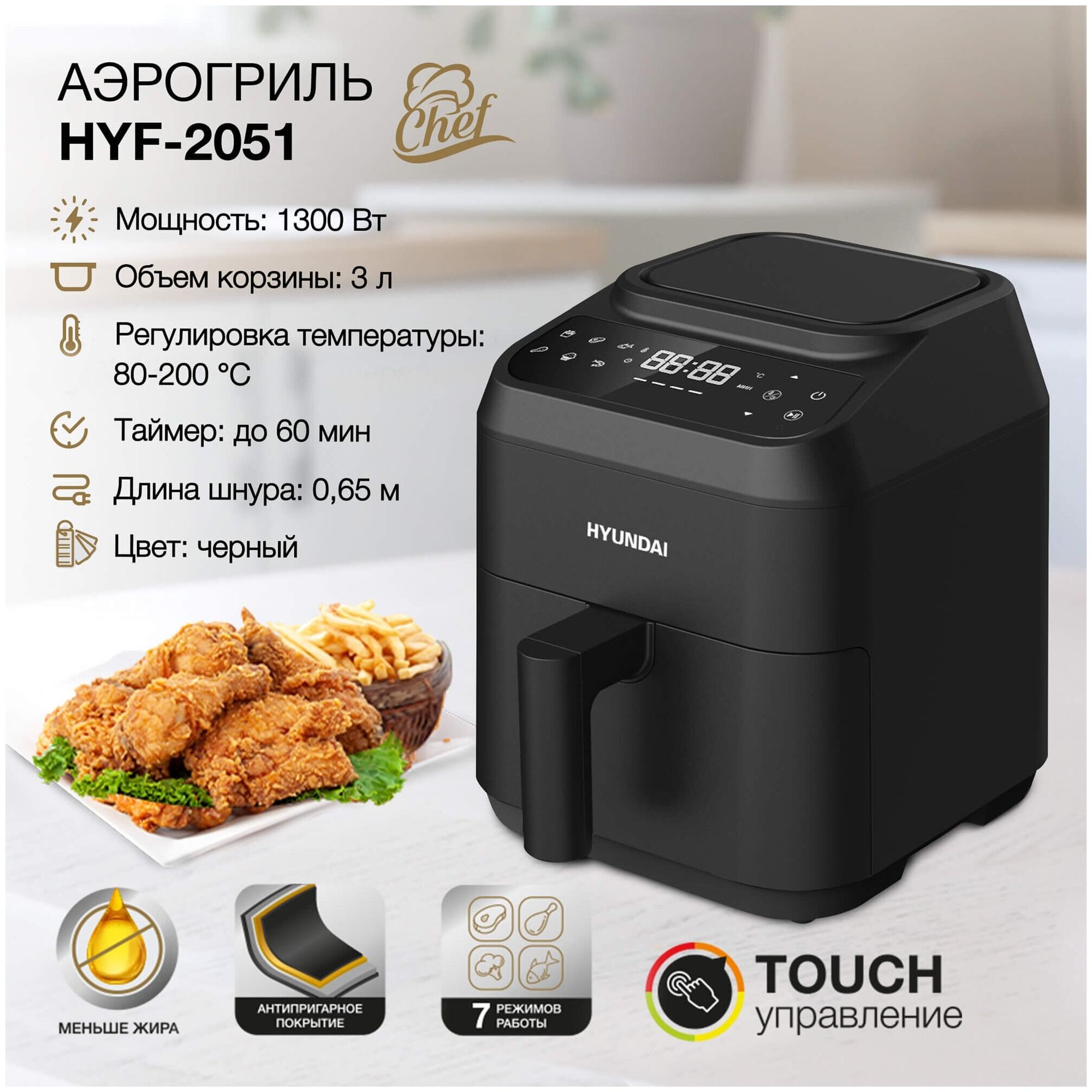 Описание товара Аэрогриль Hyundai HYF-2051 1200Вт черный