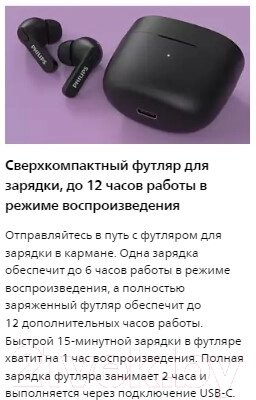 • Время работы наушников с подзарядкой в кейсе 12 ч