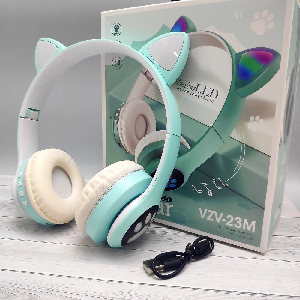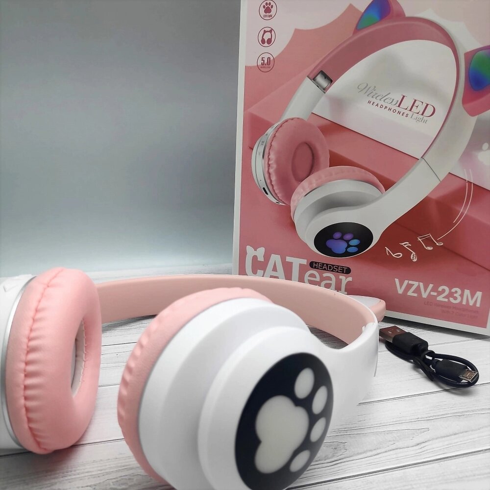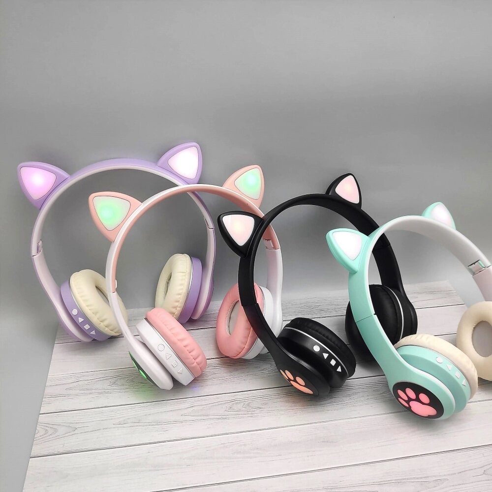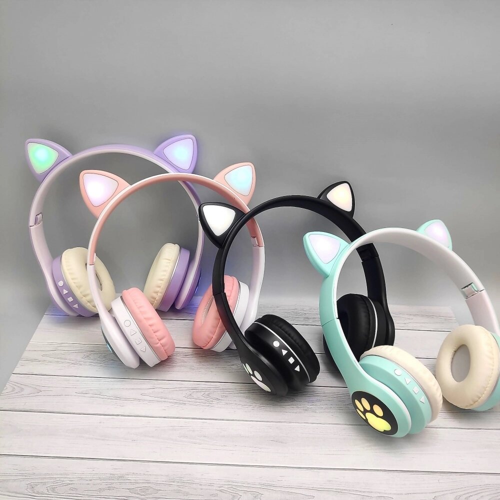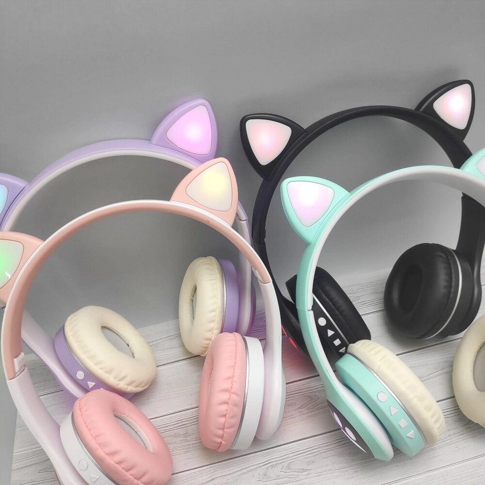 Беспроводные 5.0 bluetooth наушники Светящиеся кошачьи ушки CATear VZV-23M Лиловые