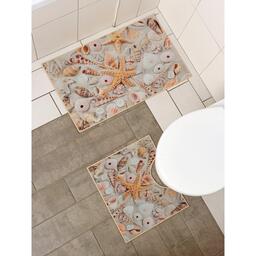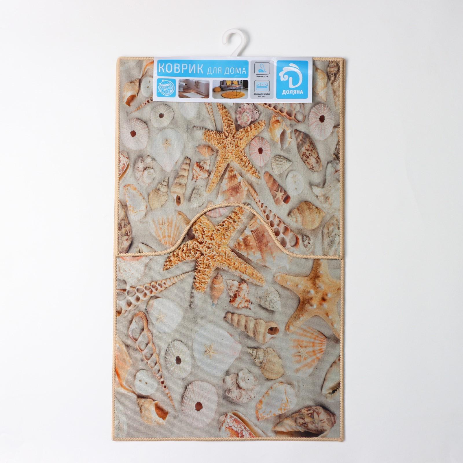 Набор ковриков для ванны и туалета Доляна «Ракушки», 2 шт: 40×45, 45×75 см