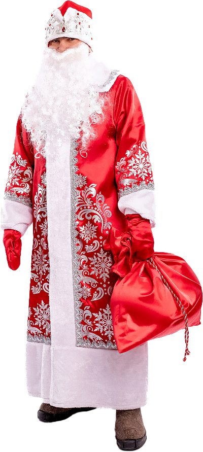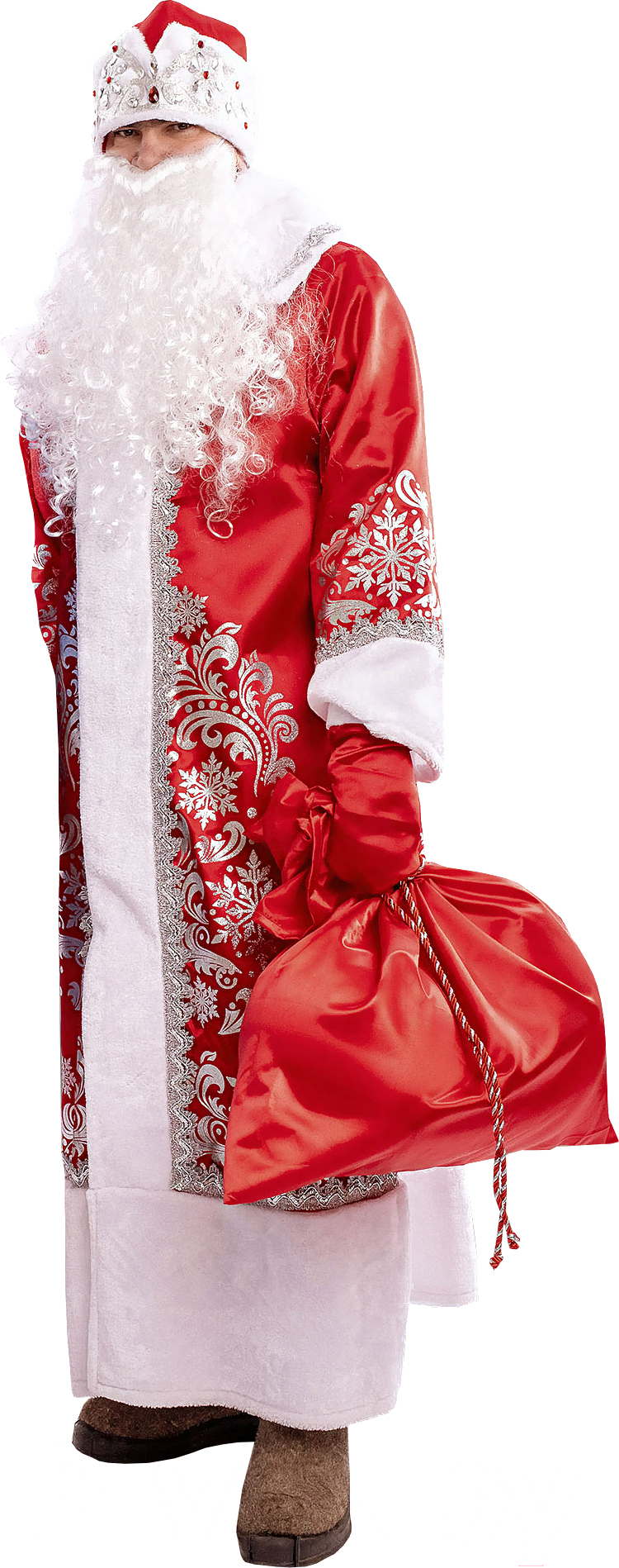 - В наборе шапка, шуба, аксессуар (варежки, мешок, парик, борода)