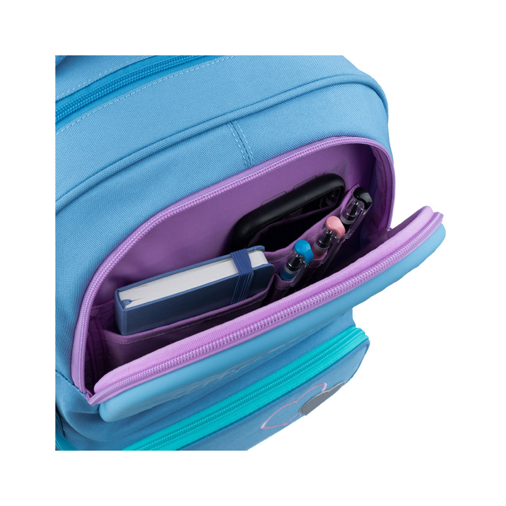 1. Шкільний рюкзак Kite SET_WK22-728M-1 – напівкаркасна ортопедична модель, виконана з міцного поліестеру. Мега-комфортний та практичний ранець! Амортизуюча спинка AGS працює за принципом автомобільної підвіски: під час ходьби рюкзак немов висить в повітрі за спиною, а вага його вмісту відчувається на 25% легшою.