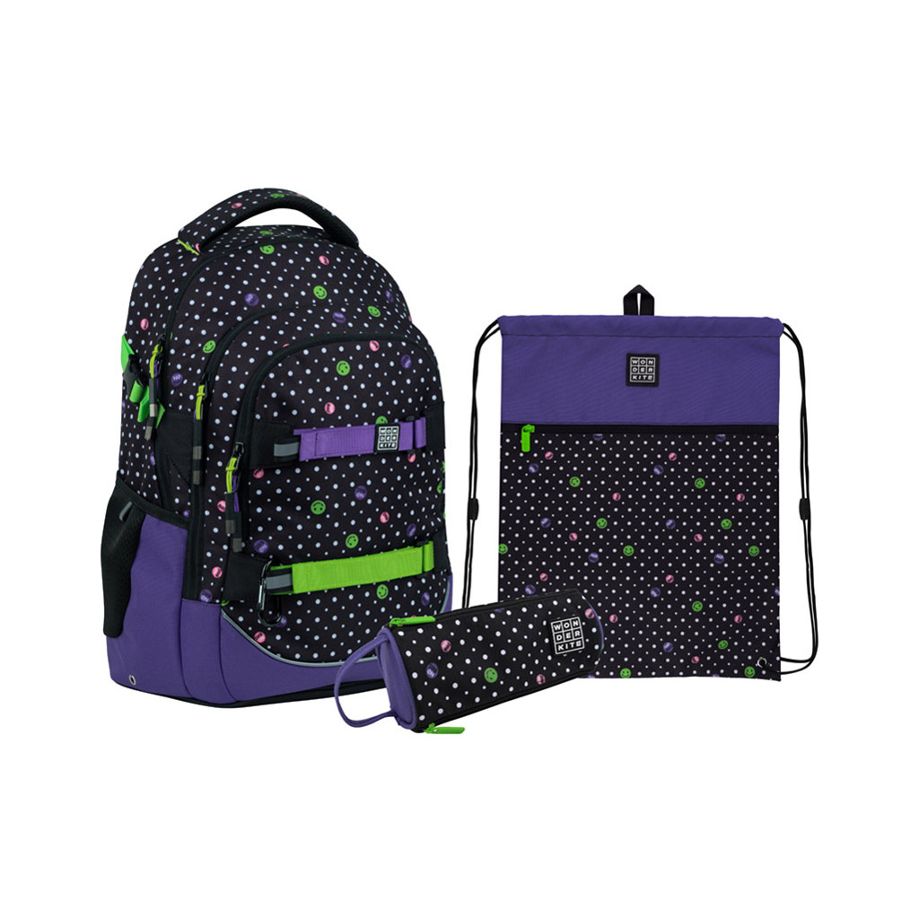 Шкільний набір Wonder Kite SET_WK22-727M-5 – ідеальна пропозиція для школи. Все найкраще з колекції Kite зібрано в зразковий преміум-комплект «рюкзак + пенал + сумка для взуття». Люксова якість, унікальний дизайн і розширений функціонал. Wonder Kite – це гордість бренду та вишенька на торті всієї шкільної колекції.