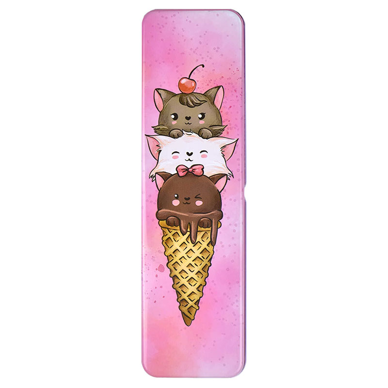 Пенал школьный КОТЫ-МОРОЖЕНОЕ без наполнения, 20x5,6x1,5 см, металл, арт. 53879