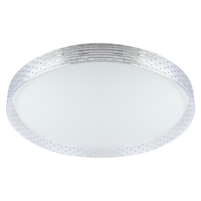 Светильник светодиодный потолочный ЭРА SPB-6-70-RC серии LIM отличается возможностью регулирования яркости светового потока и цветовой температуры. Пульт дистанционного управления имеет крупные кнопки с подсказками, очень удобен в использовании. Светильник можно расположить в уютной гостиной и менять яркость освещения в зависимости от настроения или необходимости. Цветовая температура регулируется в пределах от 3000 К до 6000 К. Диаметр корпуса составляет 51 см. Светодиодный светильник выполнен в классическом дизайне. На стальном корпусе располагается светодиодная плата, оснащенная современным и надежным драйвером. Матовый рассеиватель имеет декор, напоминающий звездное небо, он обрамлен прозрачным элементом под хрусталь. Подобная конструкция выглядит особенно выразительно в темное время суток, создавая уютную атмосферу с эффектным свечением вокруг корпуса лампы.