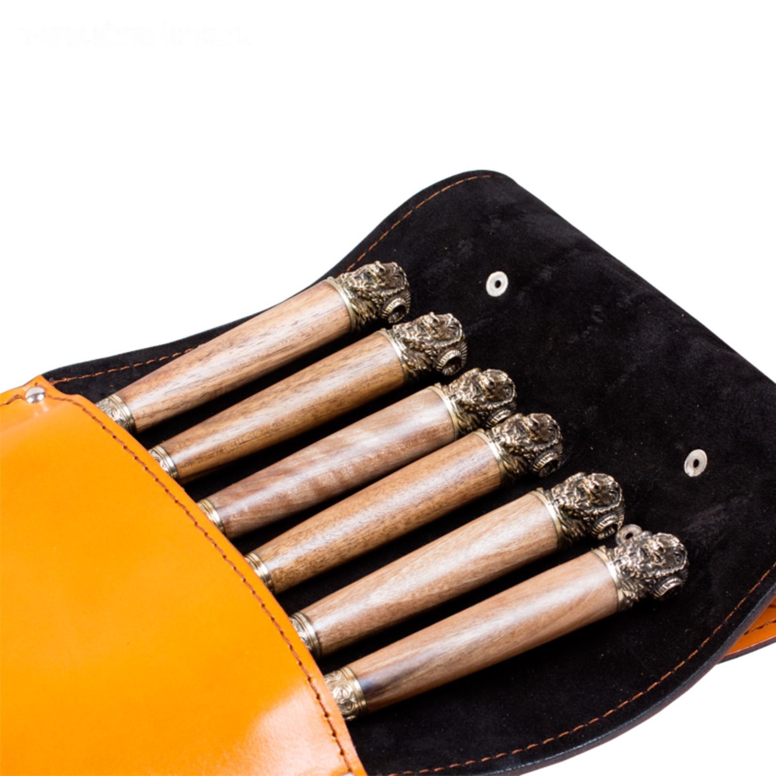 Шампуры подарочные 6 шт. в колчане из натуральной кожи!