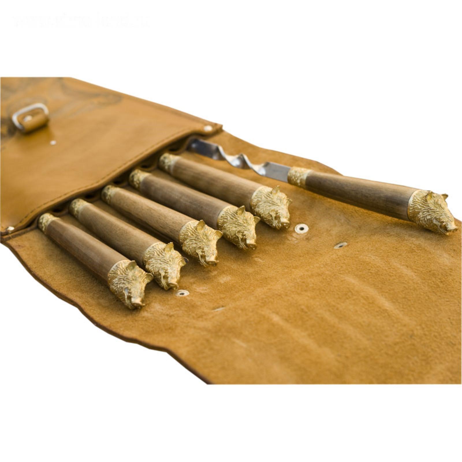 Шампуры подарочные 6 шт. в колчане из натуральной кожи