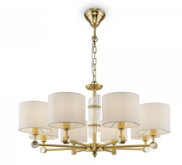 Грация классики и современные формы — популярный тандем, который активно используется в светодизайне. Серия удивляет асимметричным стеклянным декором, украшающим центральную ось светильника. Металлическая арматура отличается сдержанностью и строгостью, равно как и геометрически выверенные рожки. О благородстве и изяществе классики напоминают широкие белые абажуры, выполненные из текстиля —они делают свет мягким и уютным. В серии, представленной тремя регулируемыми по высоте люстрами, несколькими бра, торшером и настольной лампой, вы сможете найти светильник, предназначенный для любых целей и задач, а также подобрать комплексное освещение пространства.