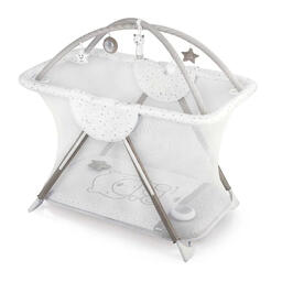 Дуже зручний манеж з матрасиком і м'якою іграшкою в комплекті. Манеж легко і компактно складається "книжкою".