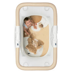 Має захисну сітку і чотири ручки, за допомогою яких малюк може встати на ноги.