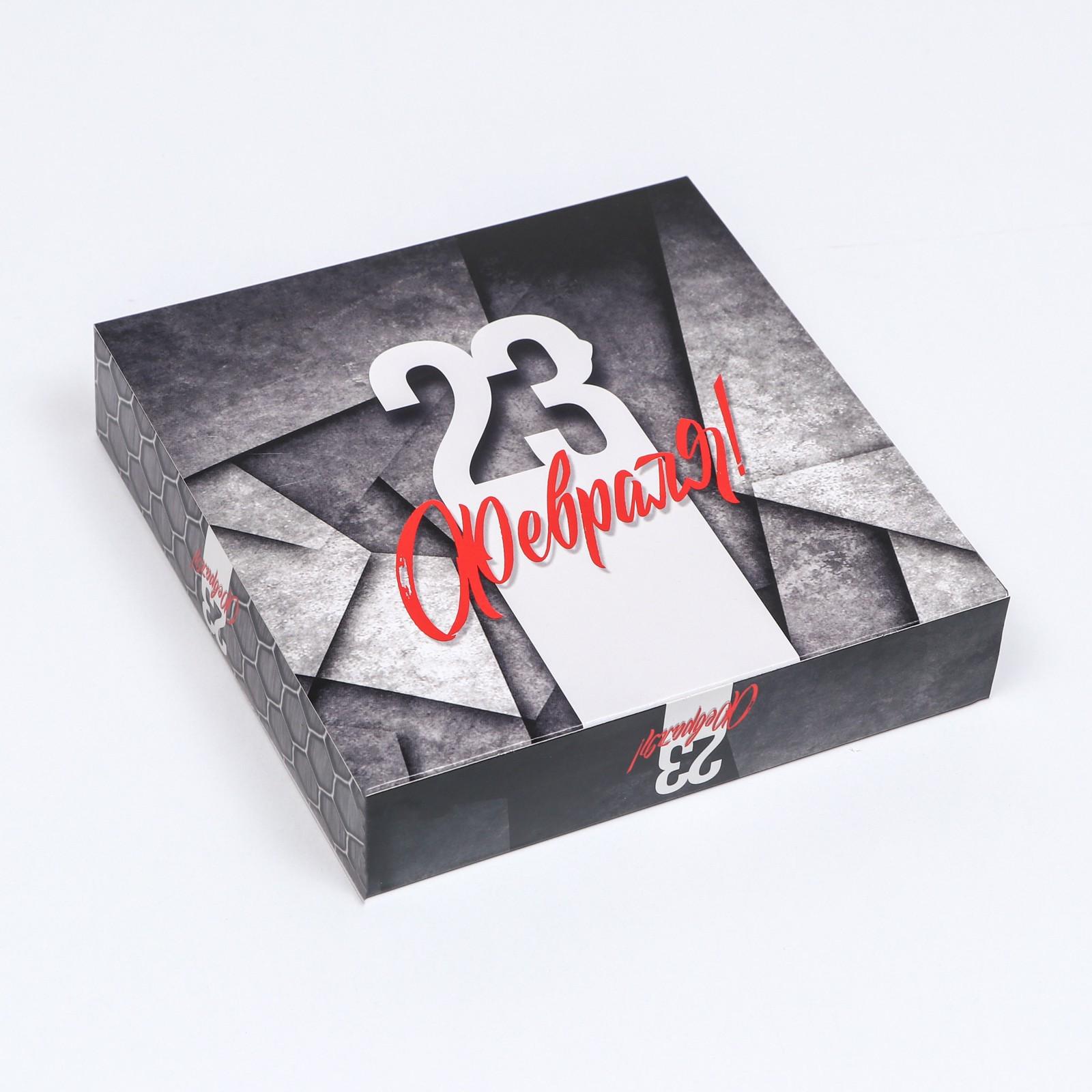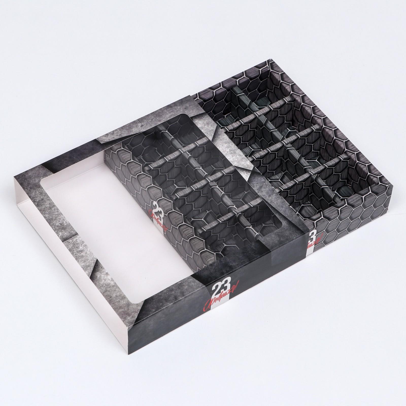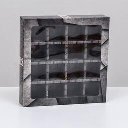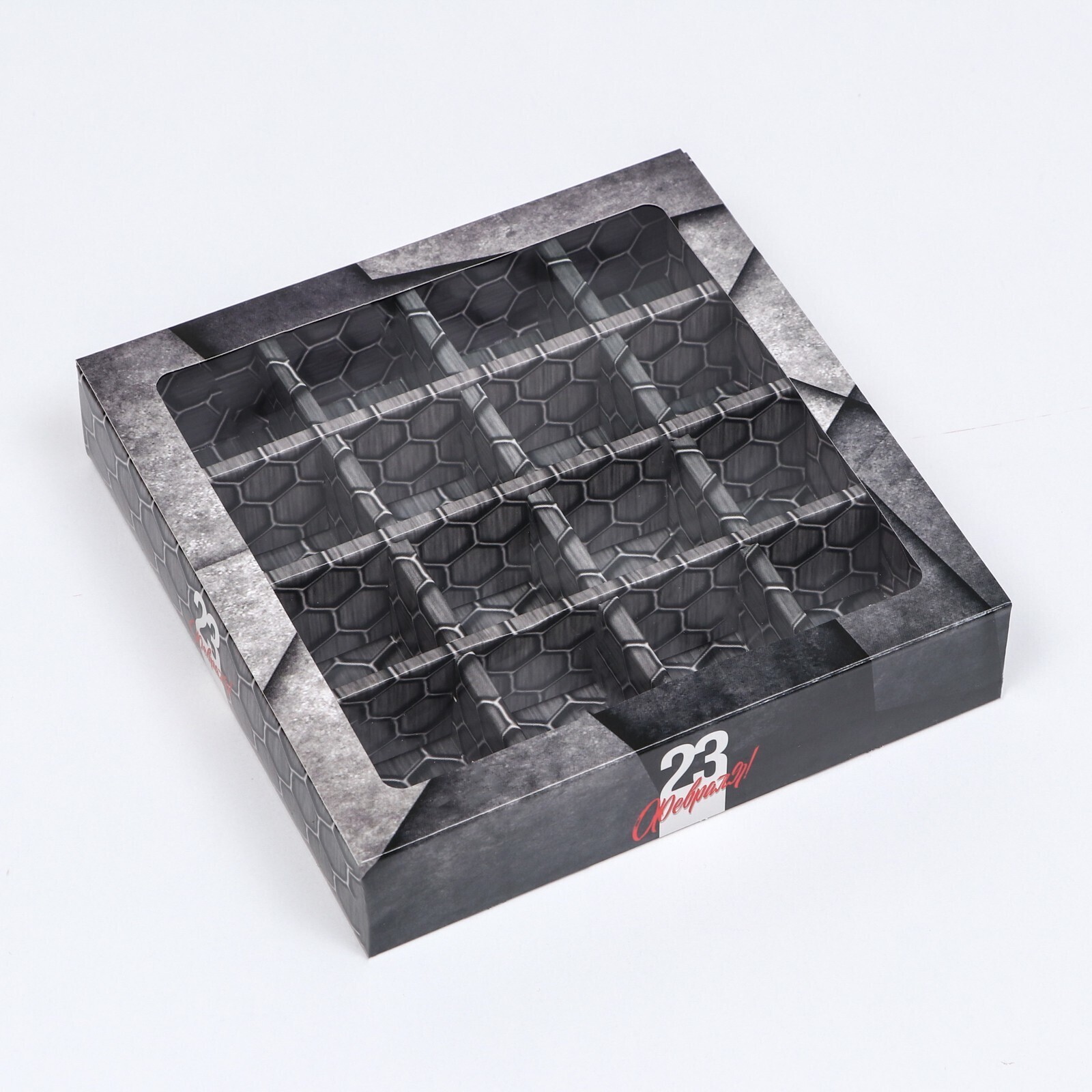 Коробка под 16 конфет "23 февраля", черные соты, 17,7 х 17,7 х 3,8 см