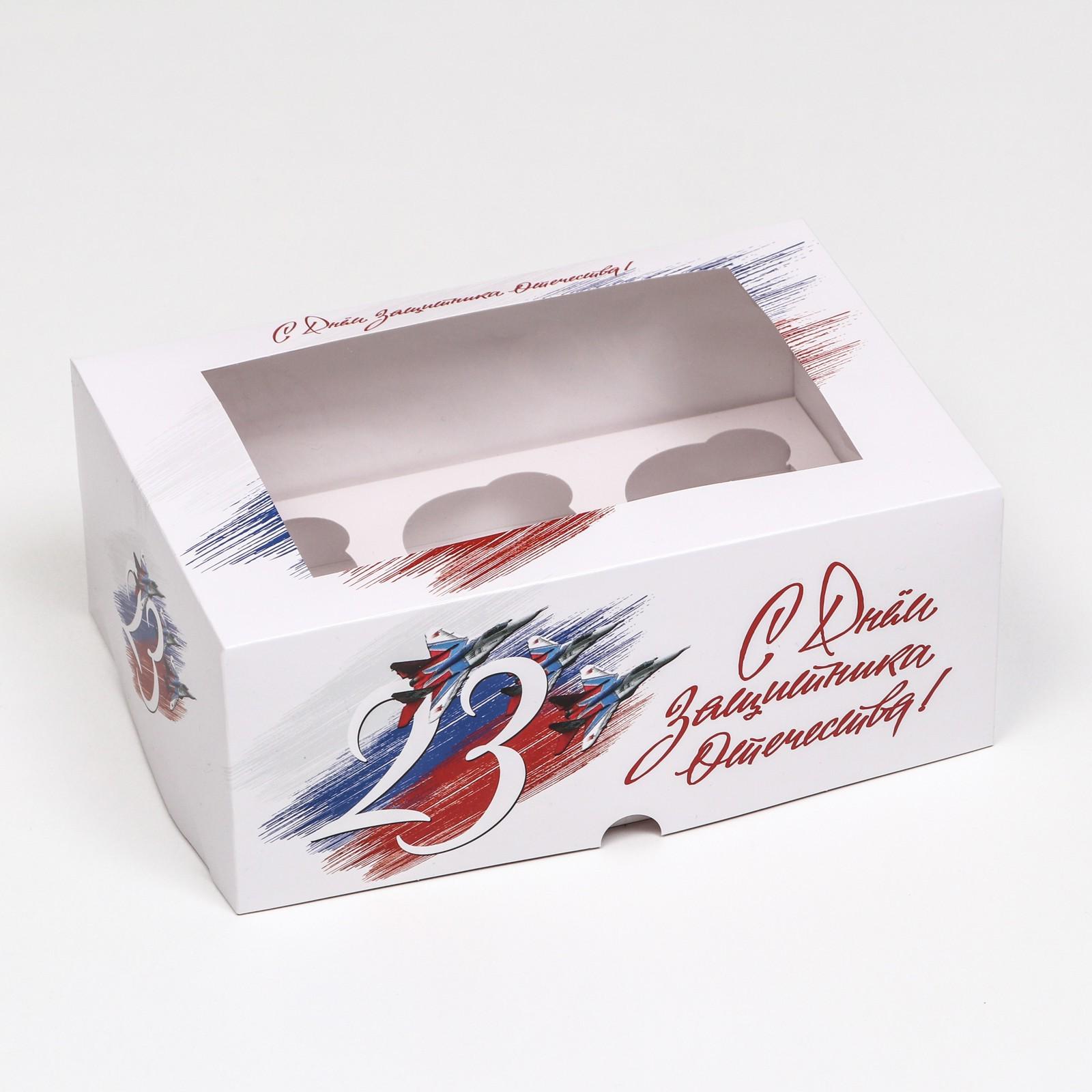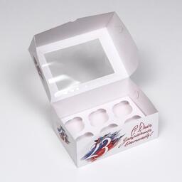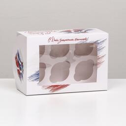 Упаковка на 6 капкейков "с Днем защитника Отечества", 25 х 17 х 10 см