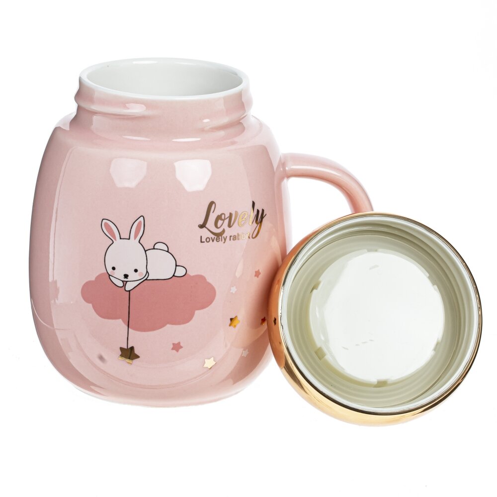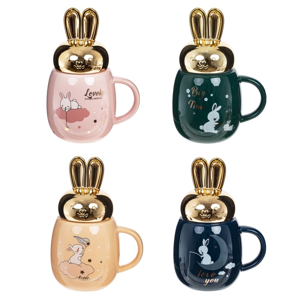 Ваш утренний кофе или чай станут вдвое вкуснее из этой фарфоровой кружки. Декор - милое изображение кролика. Кружка снабжена крышкой, украшенной кроличьими ушками. Дизайн вызовет улыбку у вас и ваших гостей. Объем: 400 мл. Представлена в 4 вариантах.