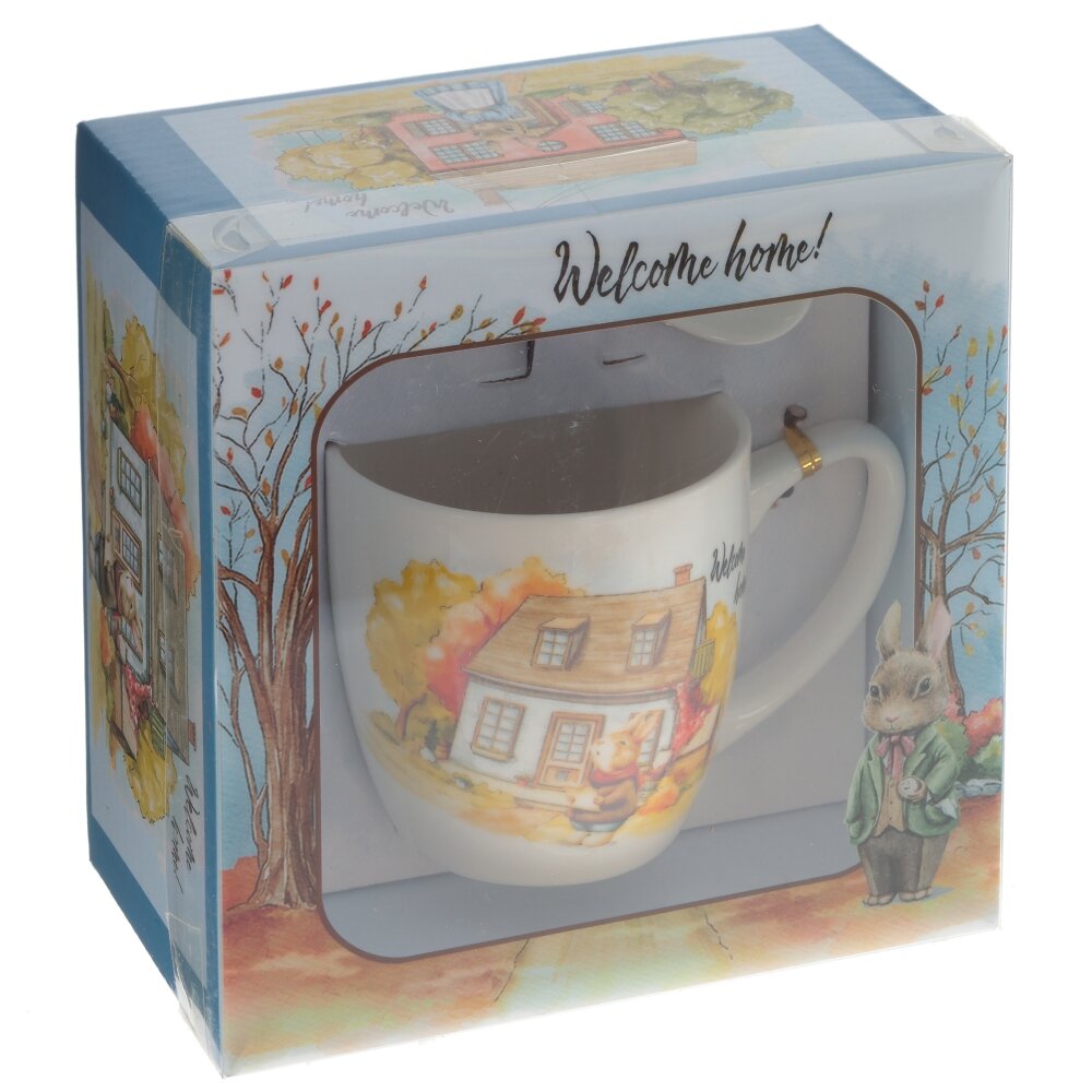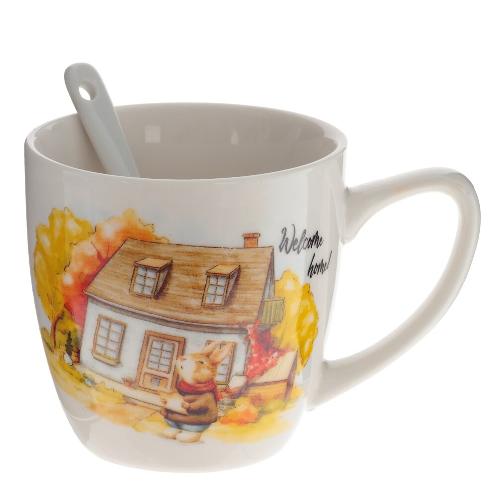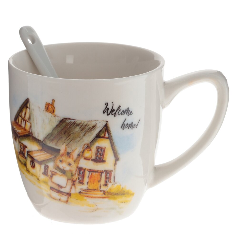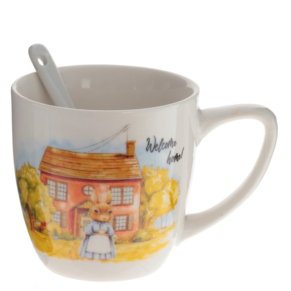 Ваш утренний кофе или чай станут вдвое вкуснее из этой фарфоровой кружки. Декор - милое изображение кролика. Кружка снабжена ложкой. Дизайн вызовет улыбку у вас и ваших гостей. Представлена в четырех вариантах.