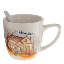 Кружка с ложкой, 150 мл, L10 W7 H7,5 см, 4в.