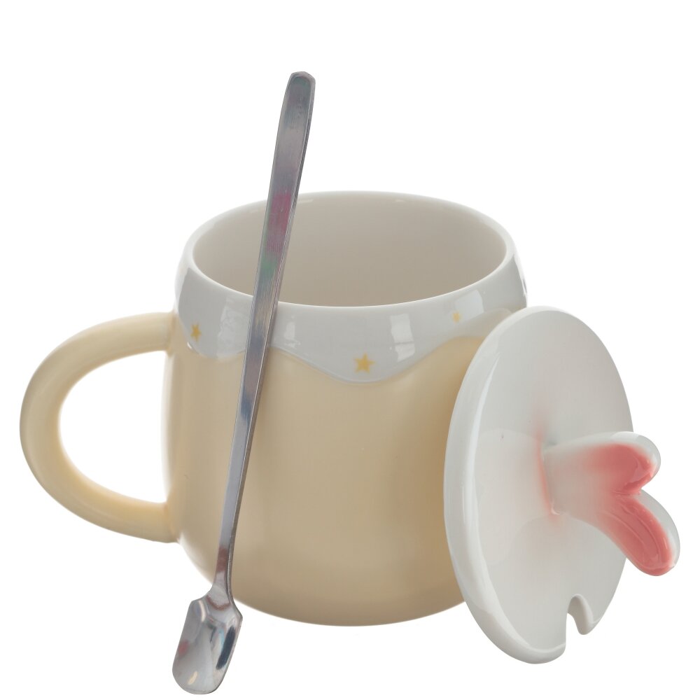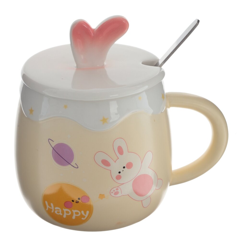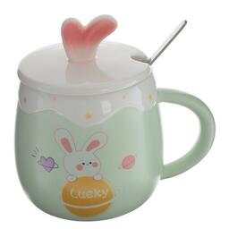 Кружка из фарфора с удобной ручкой украшена милым изображением кролика. В комплект также входит фарфоровая крышка и металлическая ложка. Эта кружка будет вашей любимицей, а каждое чаепитие с ней запоминающимся. Представлена в четырех вариантах.