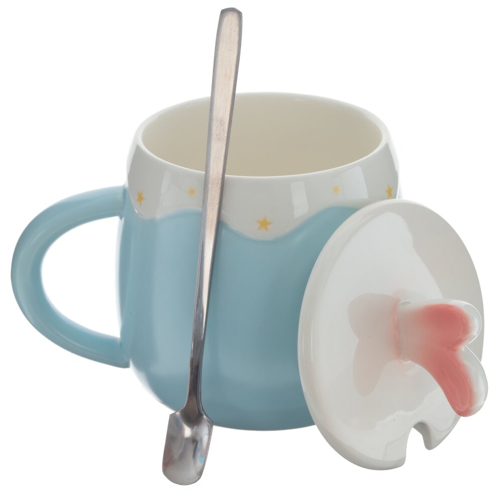Кружка с крышкой и ложкой , 450 мл, L13 W9 H14 см, 4в.