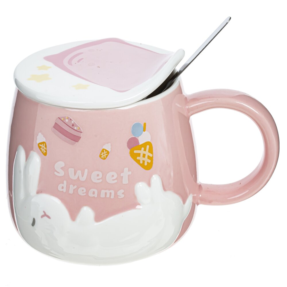 Кружка из фарфора с удобной ручкой украшена милым изображением кролика. В комплект также входит фарфоровая крышка и металлическая ложка. Эта кружка будет вашей любимицей, а каждое чаепитие с ней запоминающимся. Представлена в четырех вариантах.
