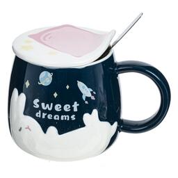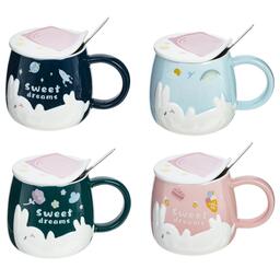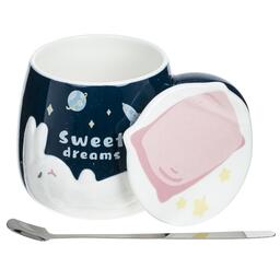 Кружка с крышкой и ложкой, 400 мл, L13 W9 H10 см, 4в.