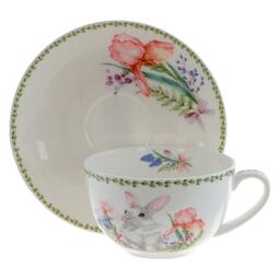 Чашка с блюдцем из фарфора украшена милым изображением кролика. Эта чашка будет вашей любимицей, а каждое чаепитие с ней запоминающимся.