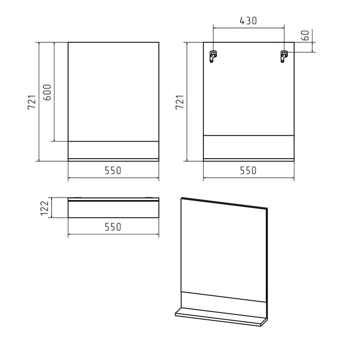 - Ширина, мм 550