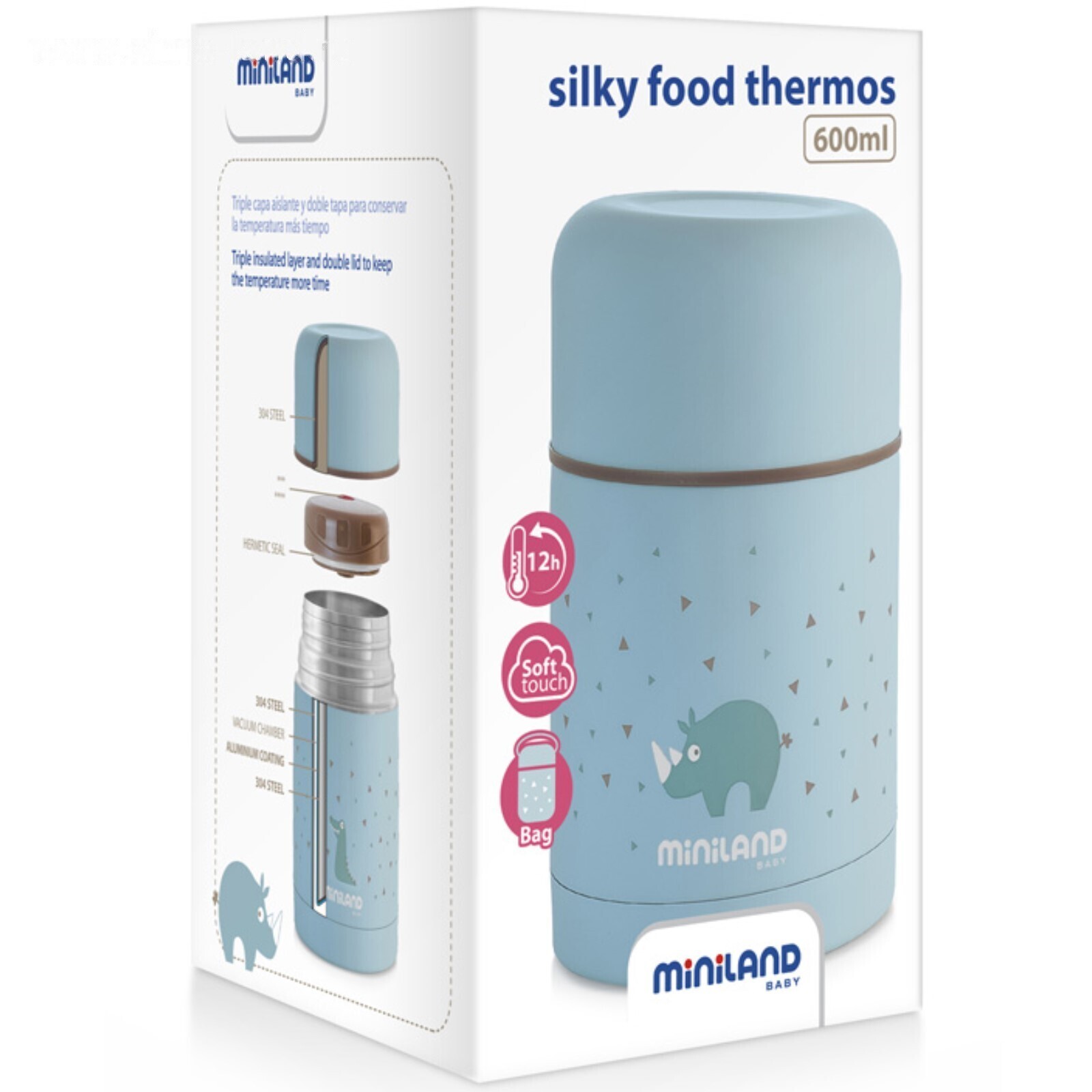 Термос для еды детский Minilald Silky Thermos, 600 мл, цвет голубой