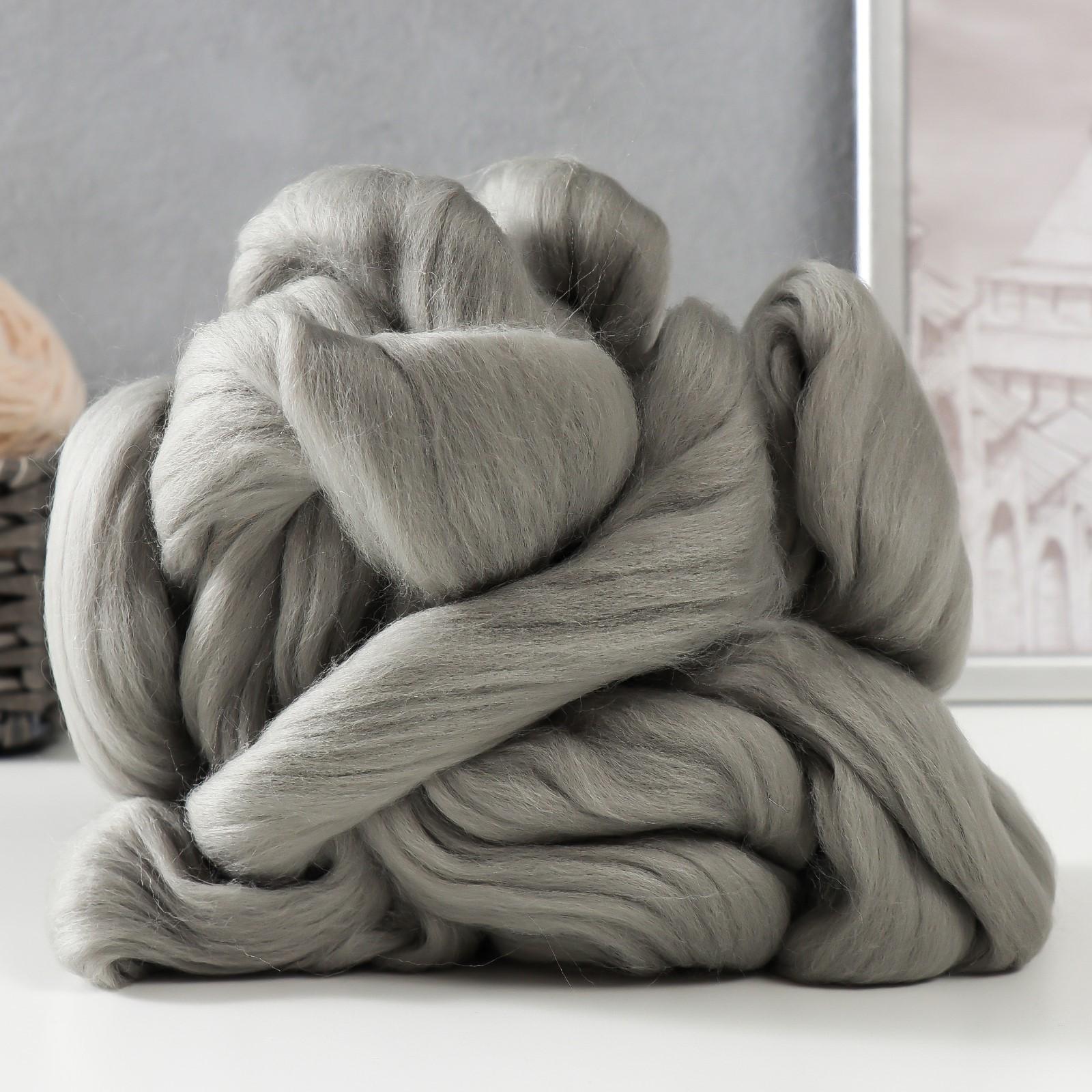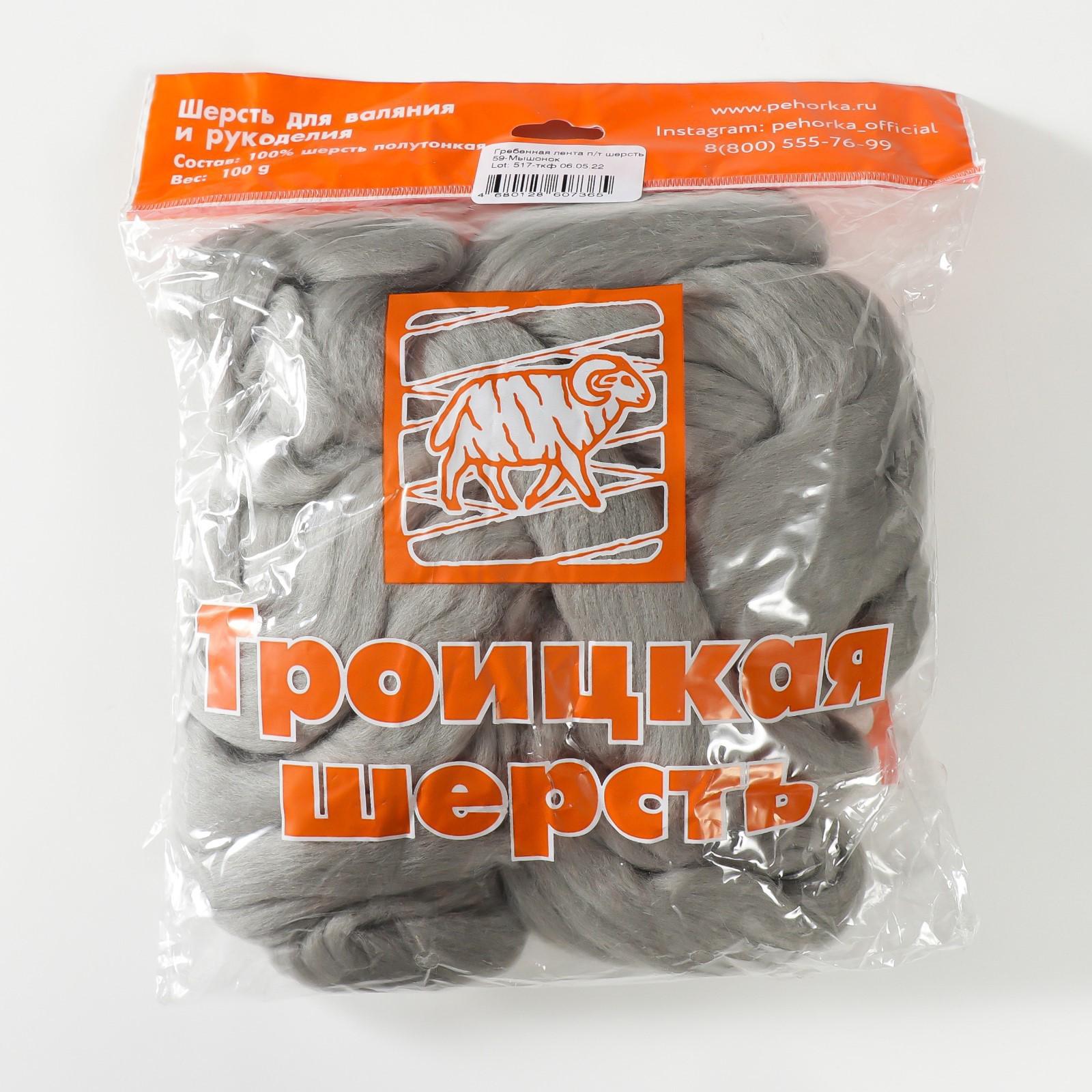 Гребенная лента 100% полутонкая шерсть 100гр (59 Мышонок)