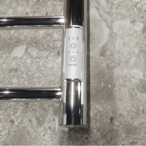 Полотенцесушитель Маргроид Вид 10 500х800 СНШ (таймер слева) — классическая конструкция электрическом исполнении. Изделие укомплектовано нагревательным элементом и таймером включения/выключения с многоступенчатой регулировкой температуры нагрева. Устройство также указывает текущее время и температуру.