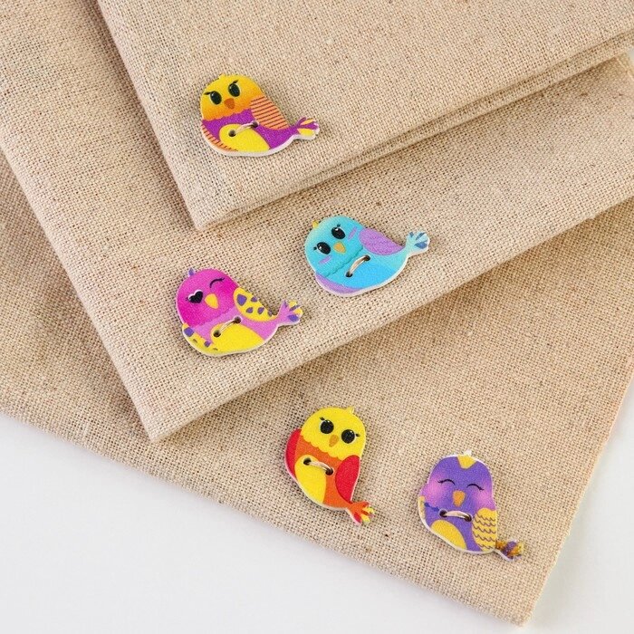 Набор пуговиц "Птичка", 10 шт, дерево 2,5 х 2,5 см