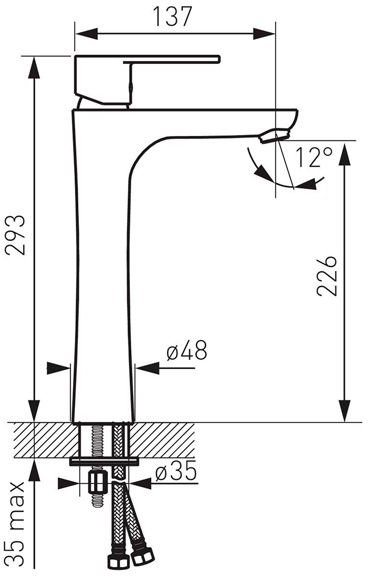 Высота смесителя - 293 мм