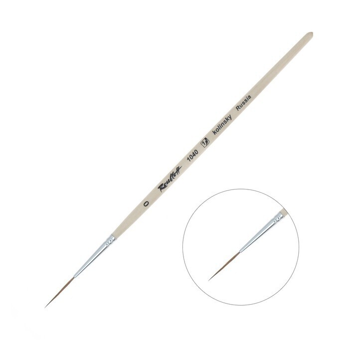 Кисть лайнер Roubloff Колонок, серия 1040 № 0, ручка короткая пропитана лаком, белая обойма