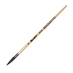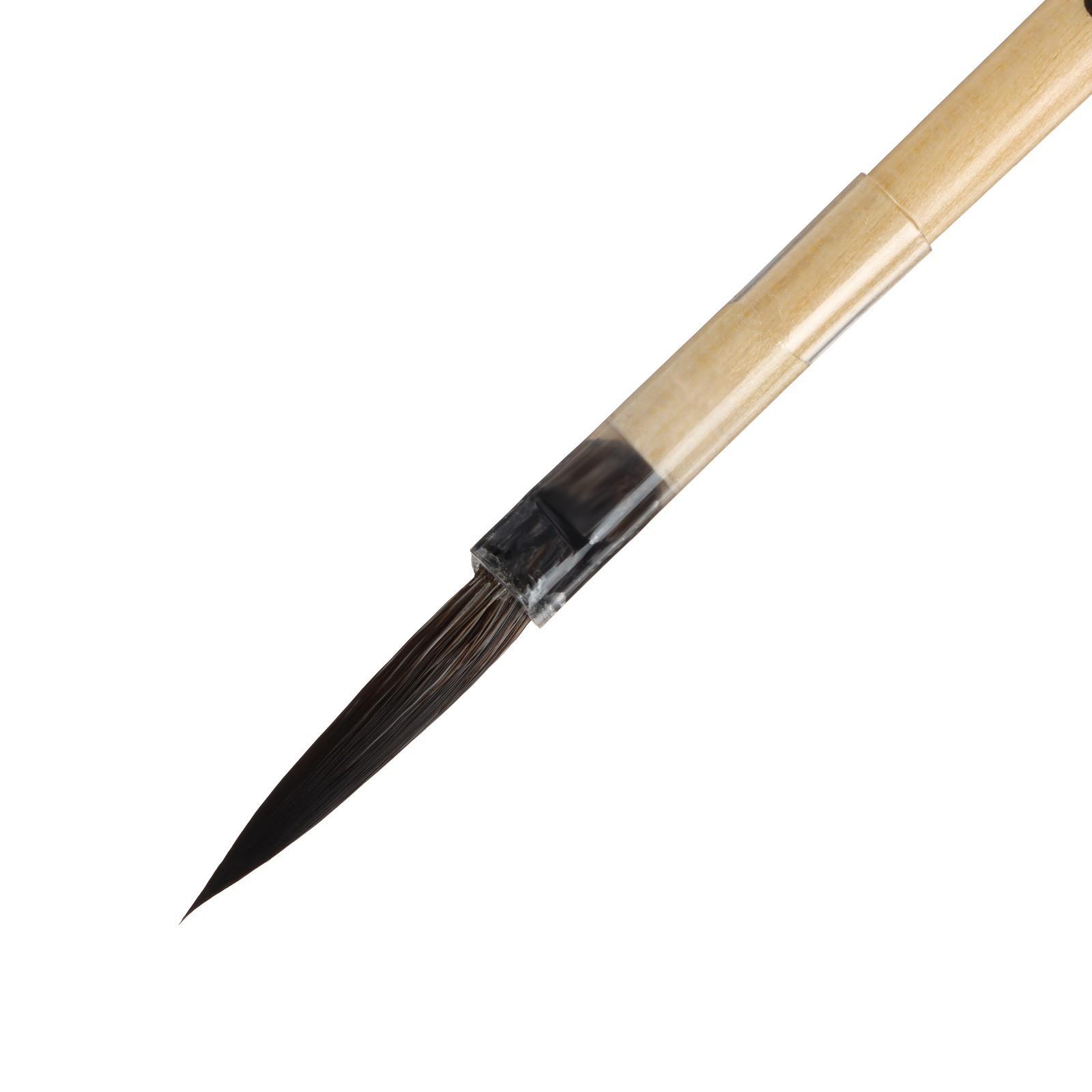 Круглая кисть из синтетики, имитирующей натуральный волос белки, удобно располагается в руке за счет короткой длины деревянной ручки. Густой ворс надежно удерживает пластиковая обойма, а лаковое покрытие предотвратит от скольжения и продлит жизнеспособность изделия. Данная кисть является универсальной, ведь она подходит для работы со многими красками на водной основе - акварель, гуашь, акрил, тушь. Также подойдет для каллиграфии, ведь максимальная ширина в середине и зауженный кончик пишущей части кисти хорошо удерживают влагу, что позволяет долгое время вести линию.