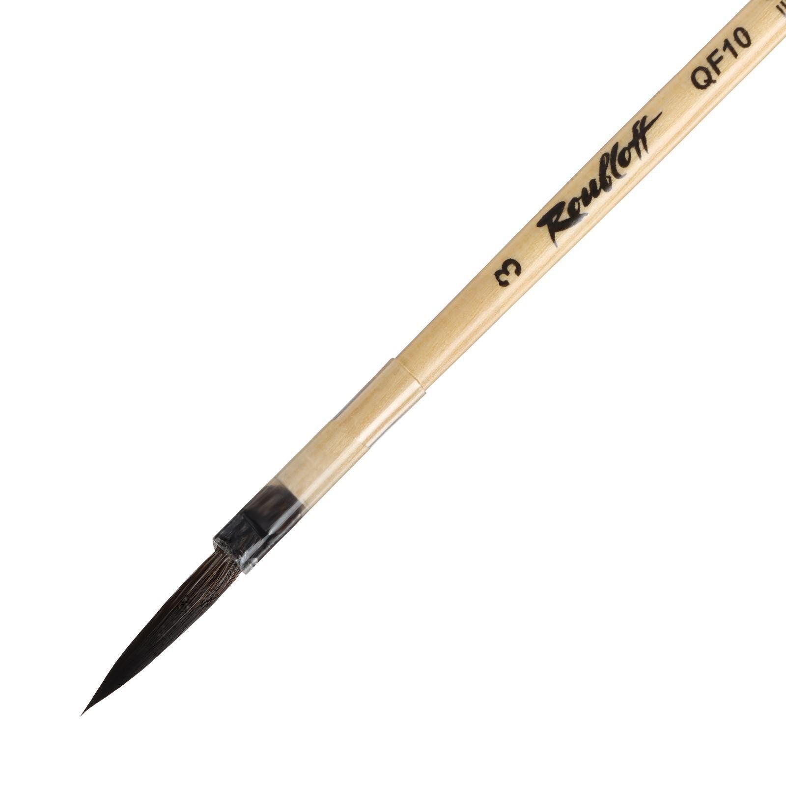 Кисть для акварели Синтетика, имитация Белки, круглая, Roubloff серия QF10 № 3, ручка короткая лакированная, пленочная обойма
