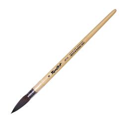 Круглая кисть из синтетики, имитирующей натуральный волос белки, удобно располагается в руке за счет короткой длины деревянной ручки. Густой ворс надежно удерживает пластиковая обойма, а лаковое покрытие предотвратит от скольжения и продлит жизнеспособность изделия. Данная кисть является универсальной, ведь она подходит для работы со многими красками на водной основе - акварель, гуашь, акрил, тушь. Также подойдет для каллиграфии, ведь максимальная ширина в середине и зауженный кончик пишущей части кисти хорошо удерживают влагу, что позволяет долгое время вести линию.