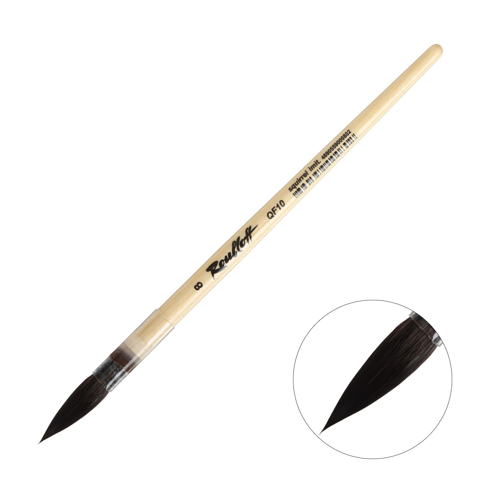 Кисть для акварели Синтетика, имитация Белки, круглая, Roubloff серия QF10 № 8, ручка короткая лакированная, пленочная обойма