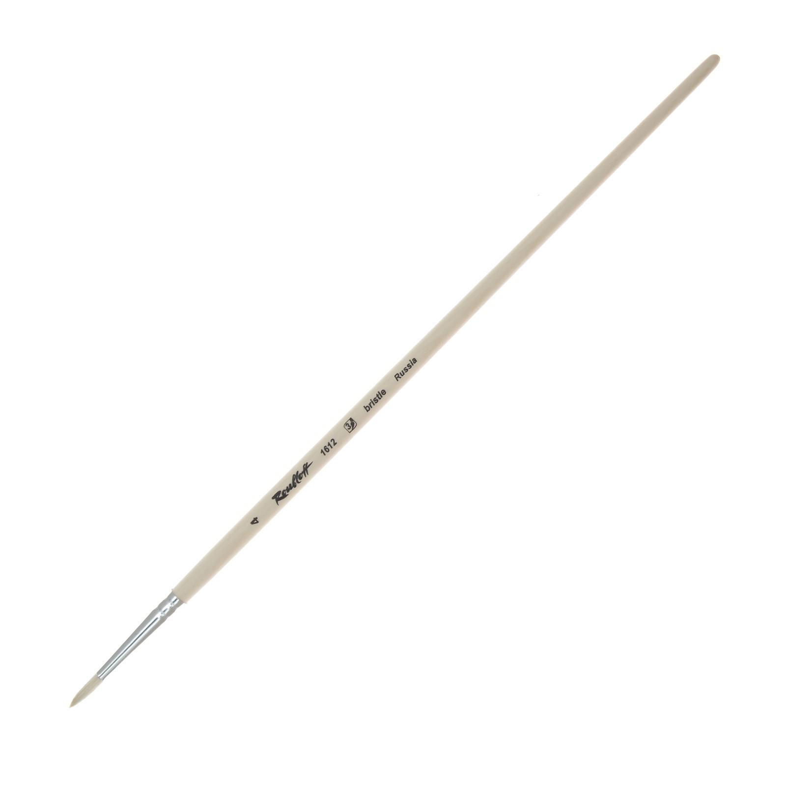 Кисть Roubloff Щетина, круглая серия 1612 № 4, ручка длинная пропитана лаком, белая обойма