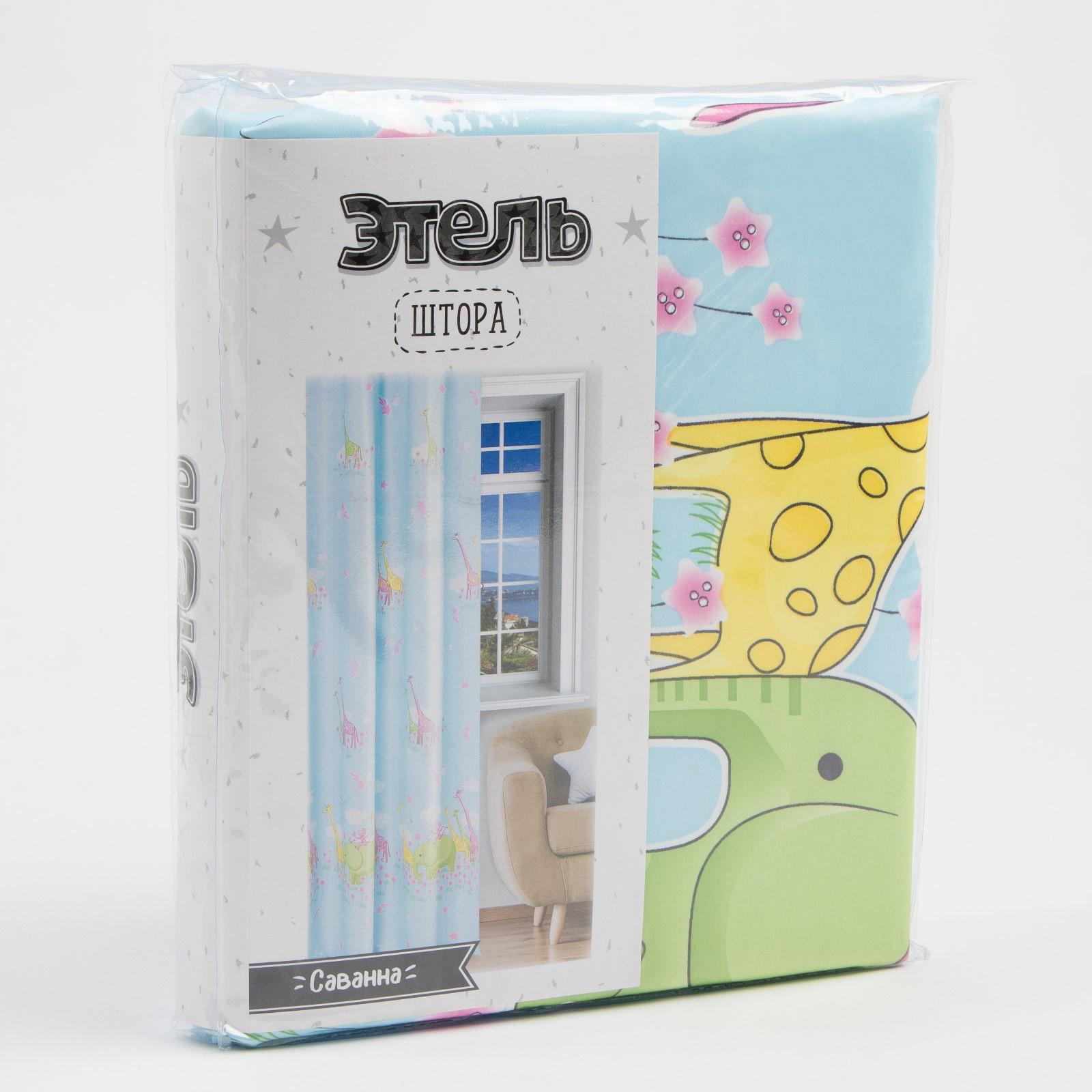 Портьера Этель «Саванна» без держателя, цвет голубой, 170х260 см, блэкаут, 100% полиэстер