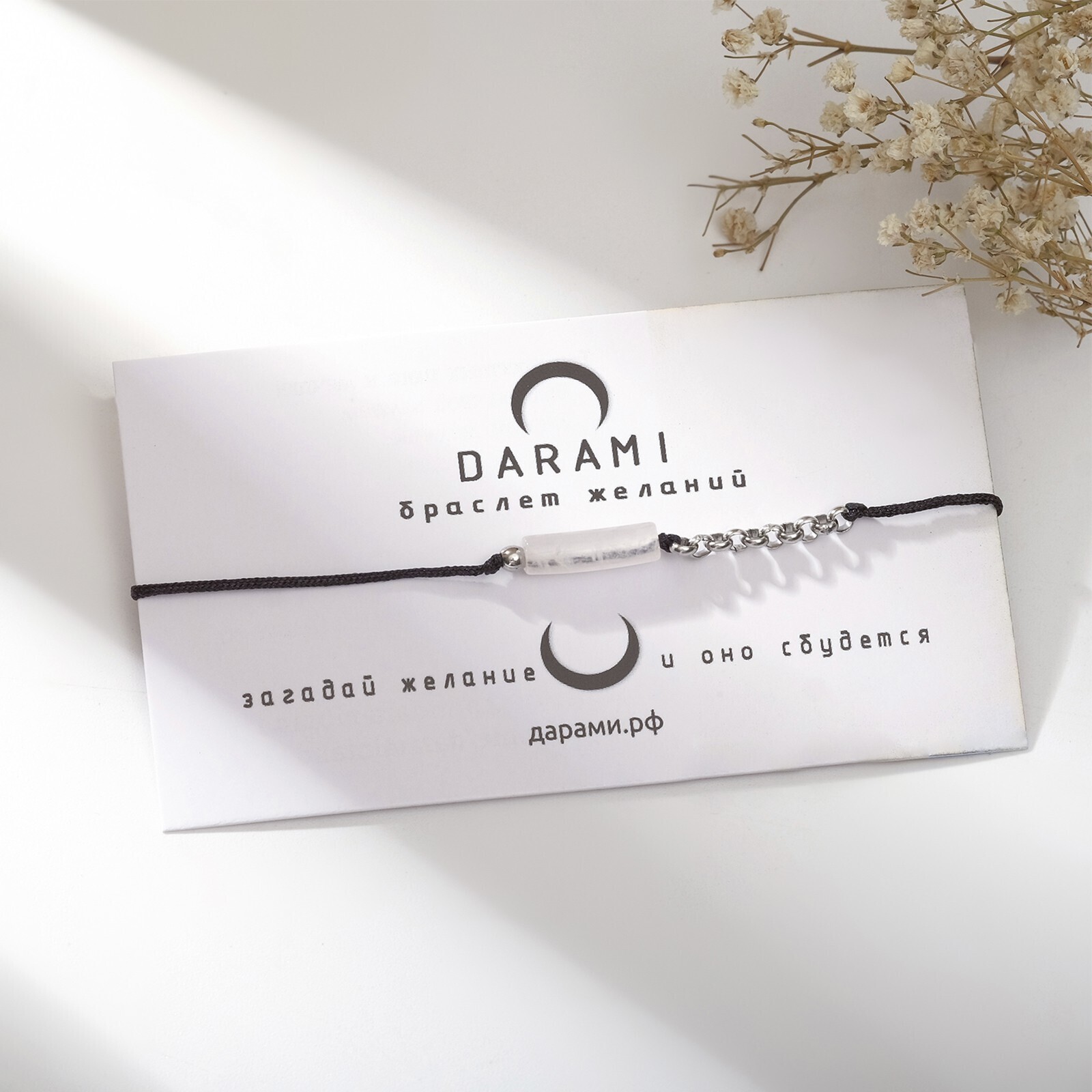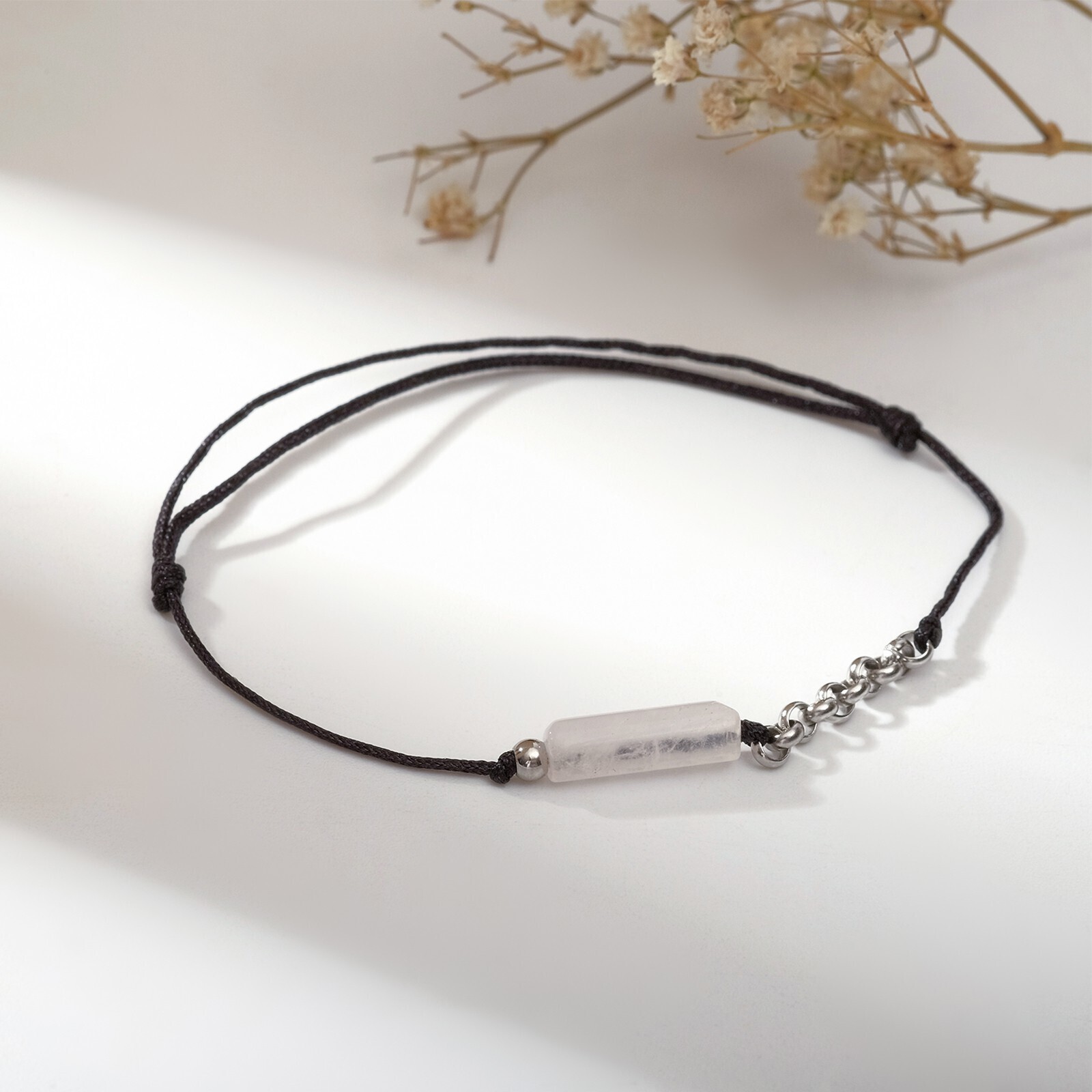 Браслет желаний "Кварц розовый" с цепью, на чёрной нити, длина регулируется