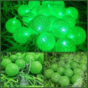 Гирлянда Новогодняя Шар хлопковый Тайские фонарики 20 шаров, 5 м Зеленая