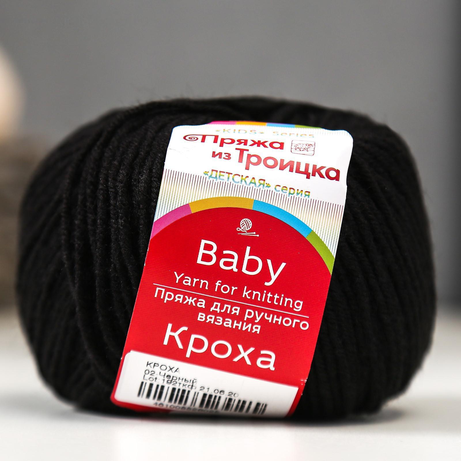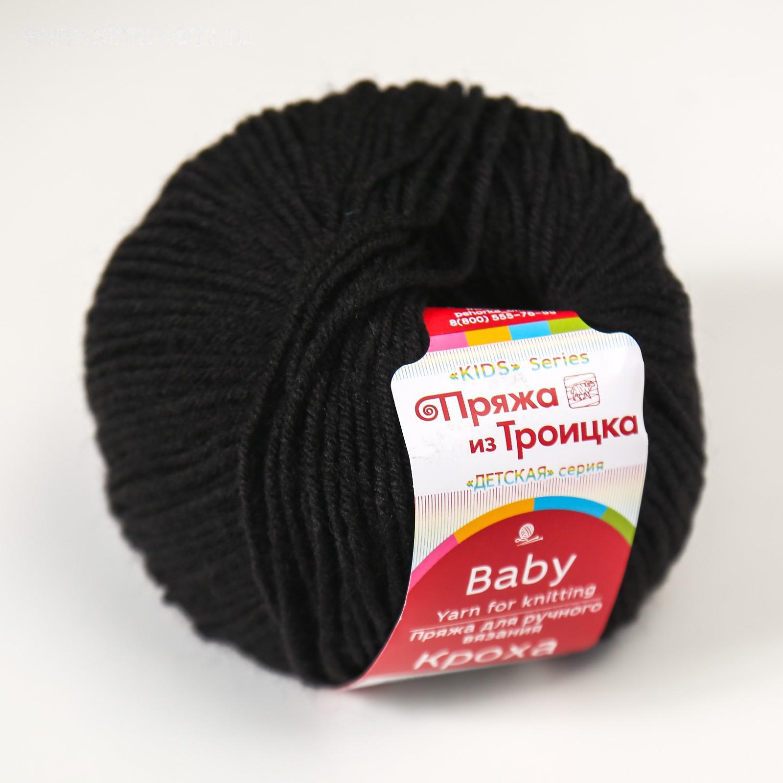 Пряжа "Кроха" 20% шерсть, 80% акрил 135м/50гр (02-черный)