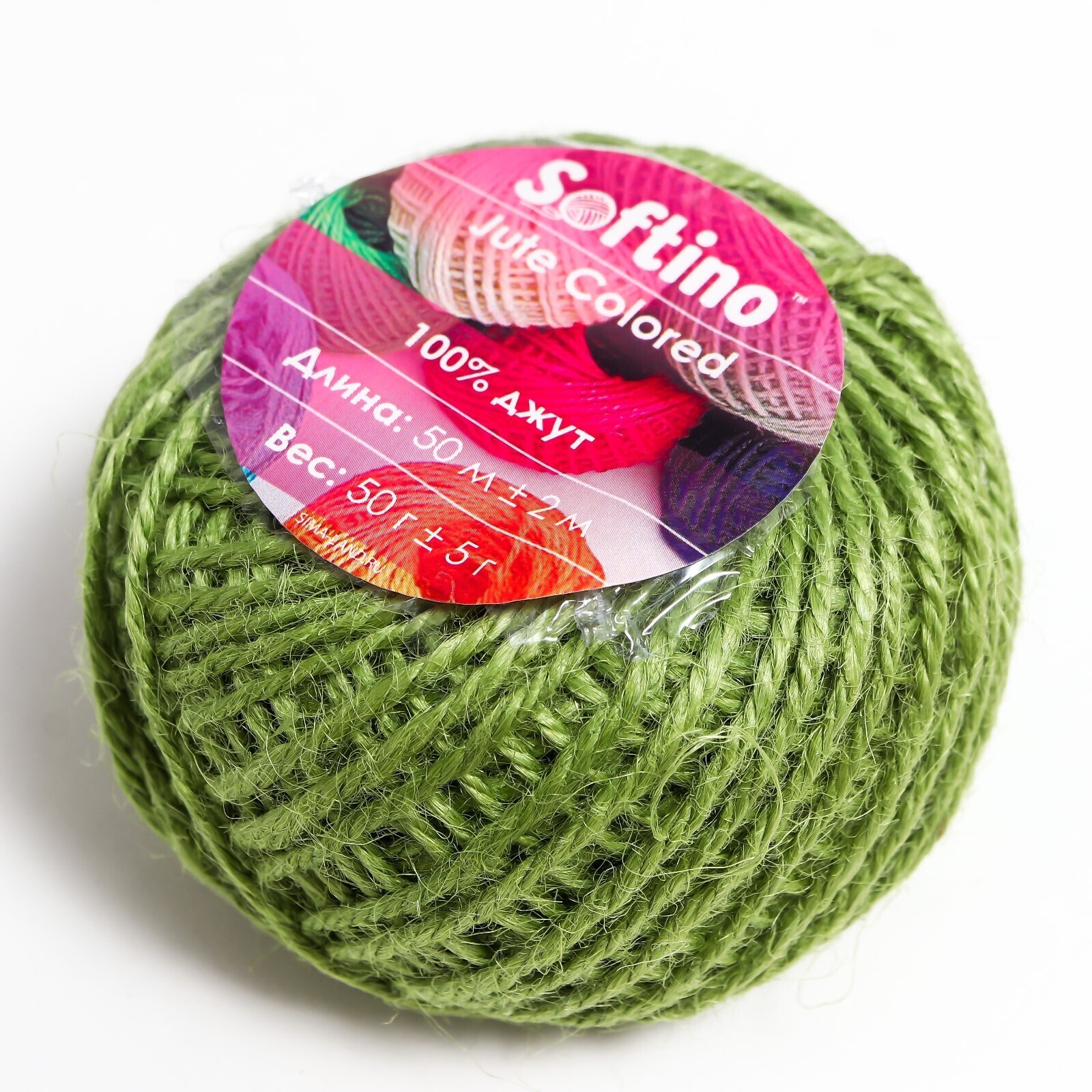Пряжа 100% джут "Softino Jute Colored" 50м ±2м зелёный 50 гр