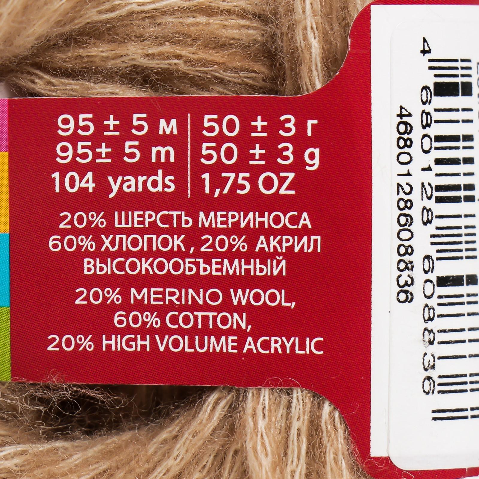 Пряжа "Фиджи" 20% меринос. шерсть, 60% хлопок, 20% акрил 95м/50гр (579 св.кофейный)