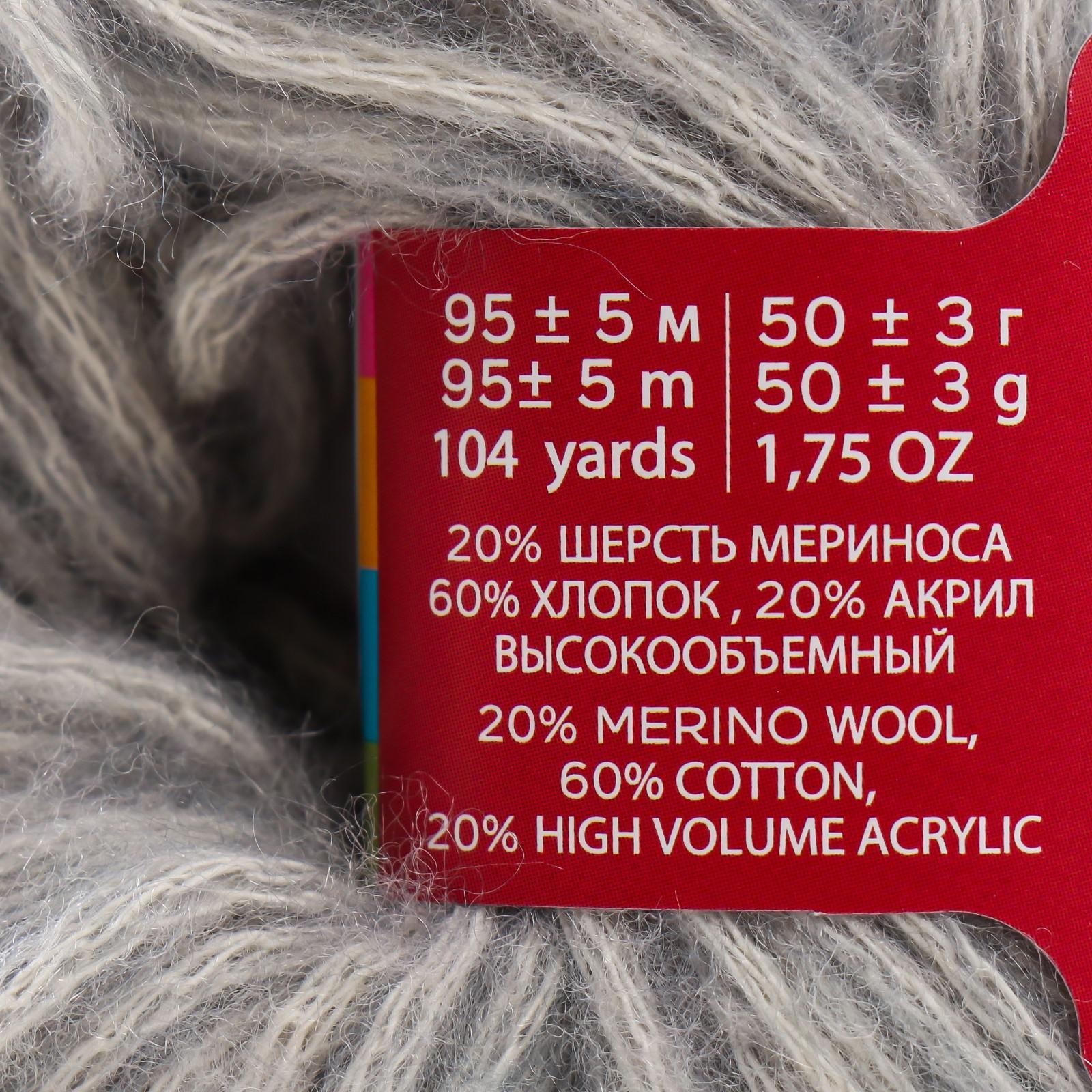 Пряжа "Фиджи" 20% меринос. шерсть, 60% хлопок, 20% акрил 95м/50гр (08 Св.серый)
