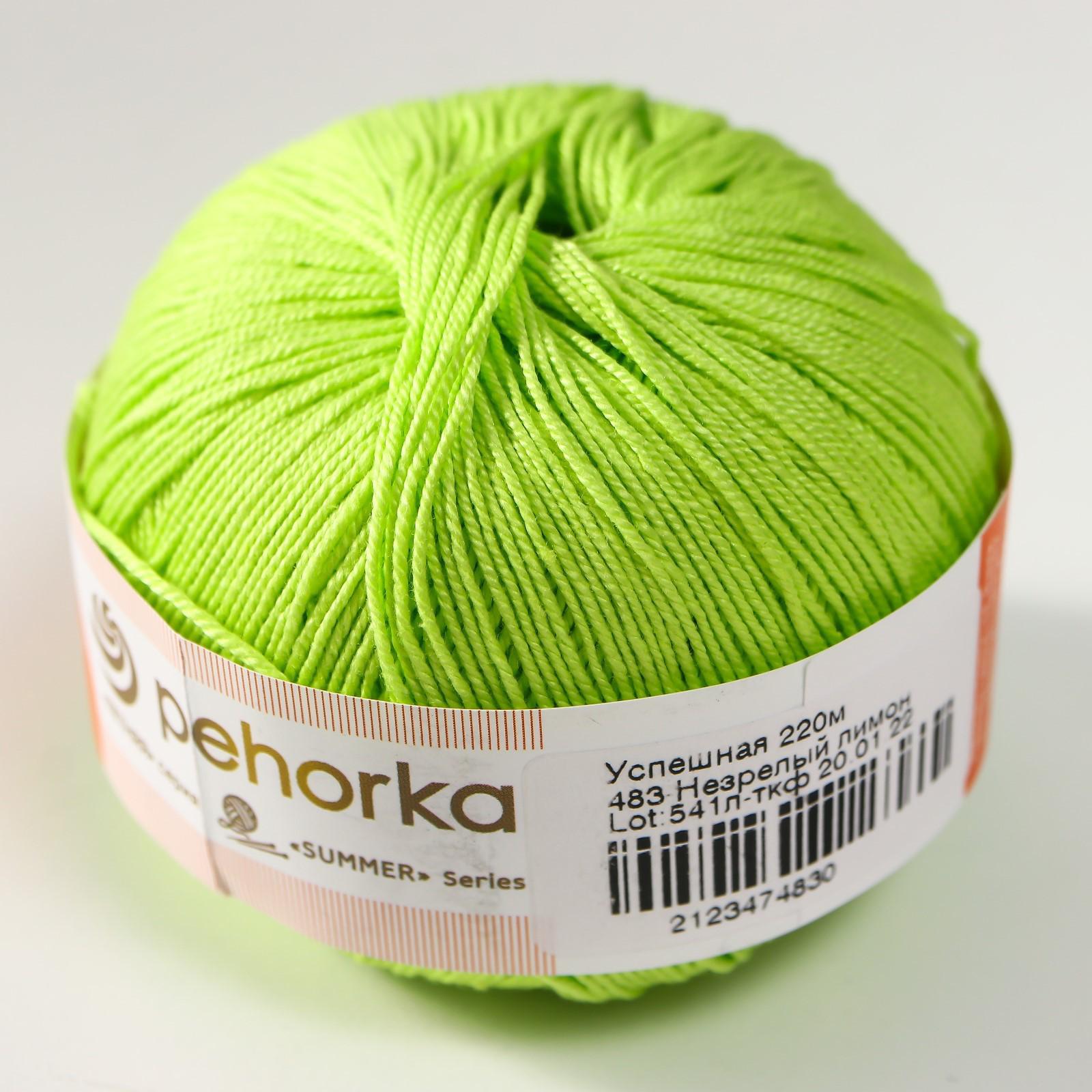 Уникальная пряжа "Успешная" 100%мерсеризованный хлопок 220м/50гр (483-Незрелый лимон) из 100% мерсеризованного хлопка, который отличается от обычного особым способом обработки. Благодаря этому волокно обретает высокую прочность, устойчивость к истиранию и мягкость. Вязаное полотно получается ровным с лёгким глянцевым блеском и отлично подходит для жаркой летней погоды. Стоит отметить, что многие рукодельницы вяжут как спицами, так и крючком, ведь в работе нить приятная и послушная.