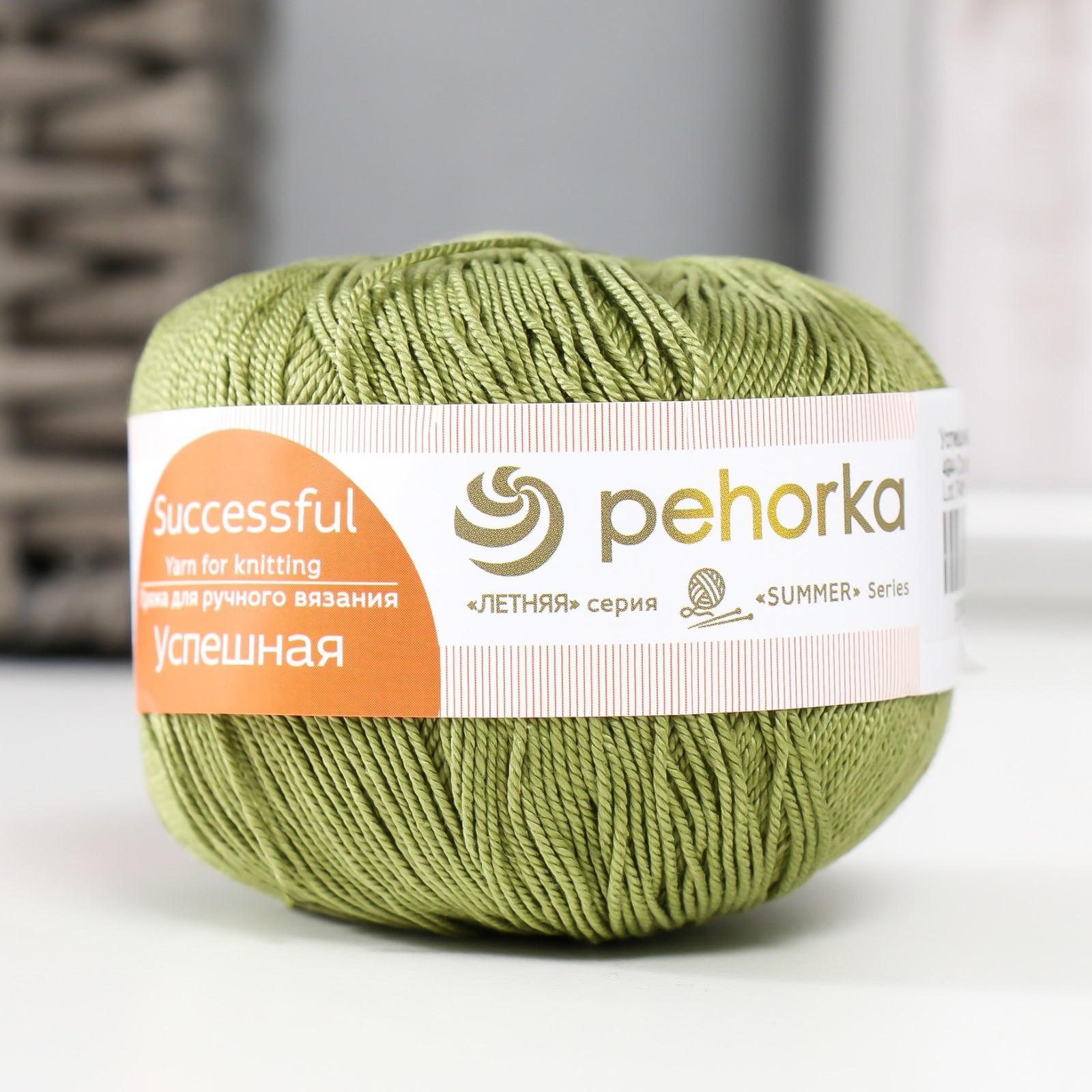 Пряжа "Успешная" 100%мерсеризованный хлопок 220м/50гр (494-Св.хаки)