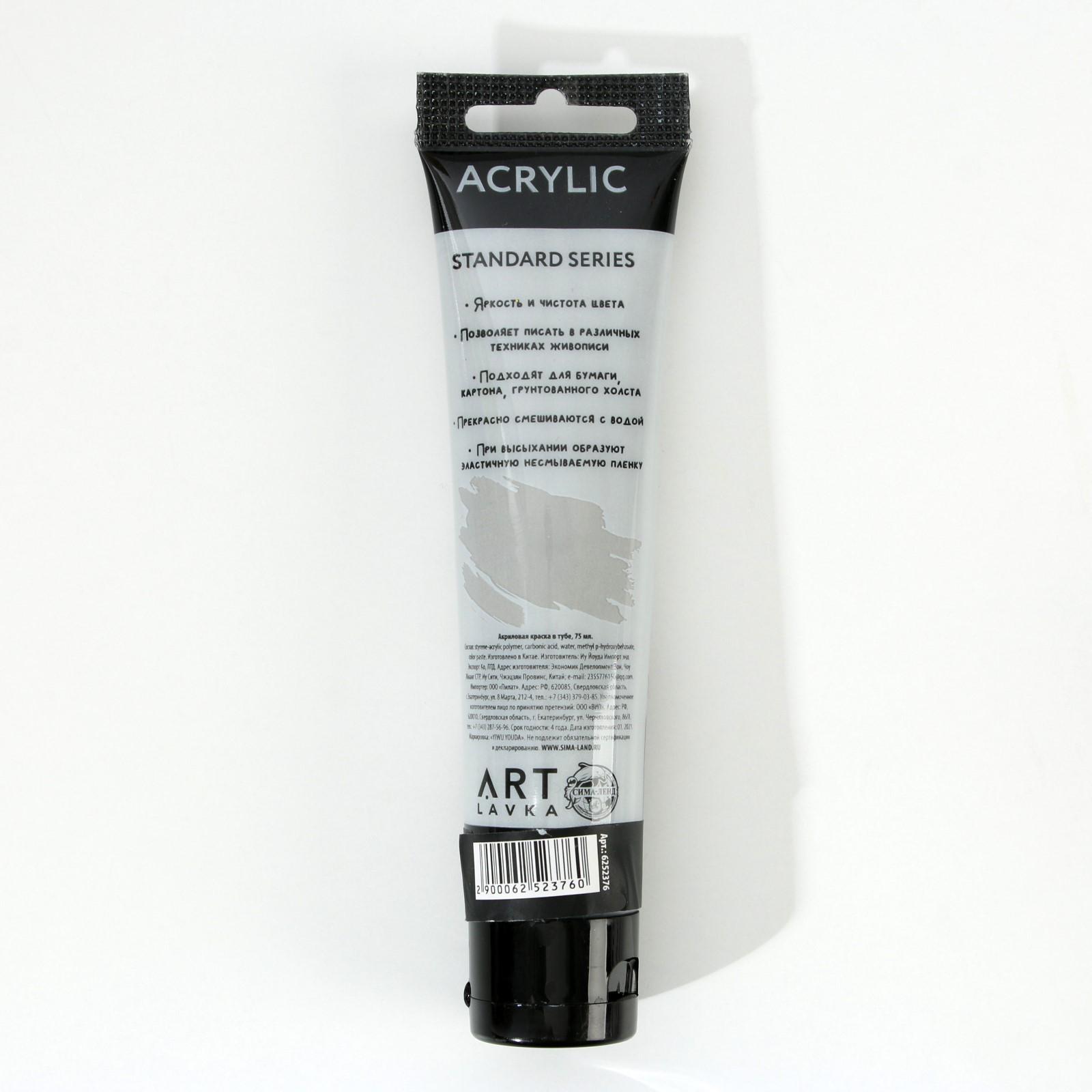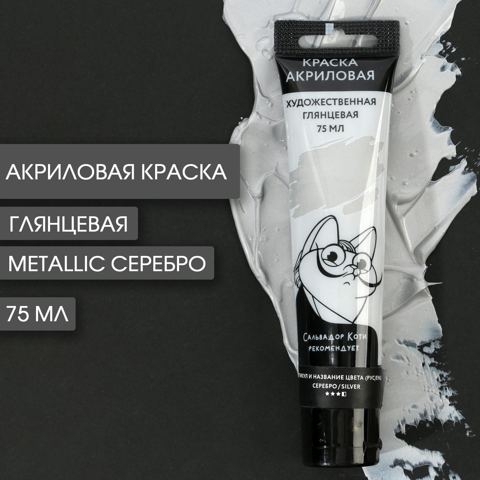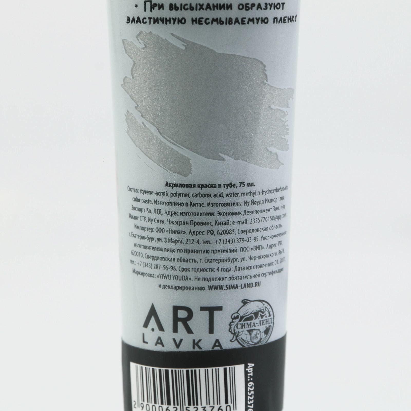 Акриловая краска, цвет metallic серебро, в тубе 75 мл, ARTLAVKA
