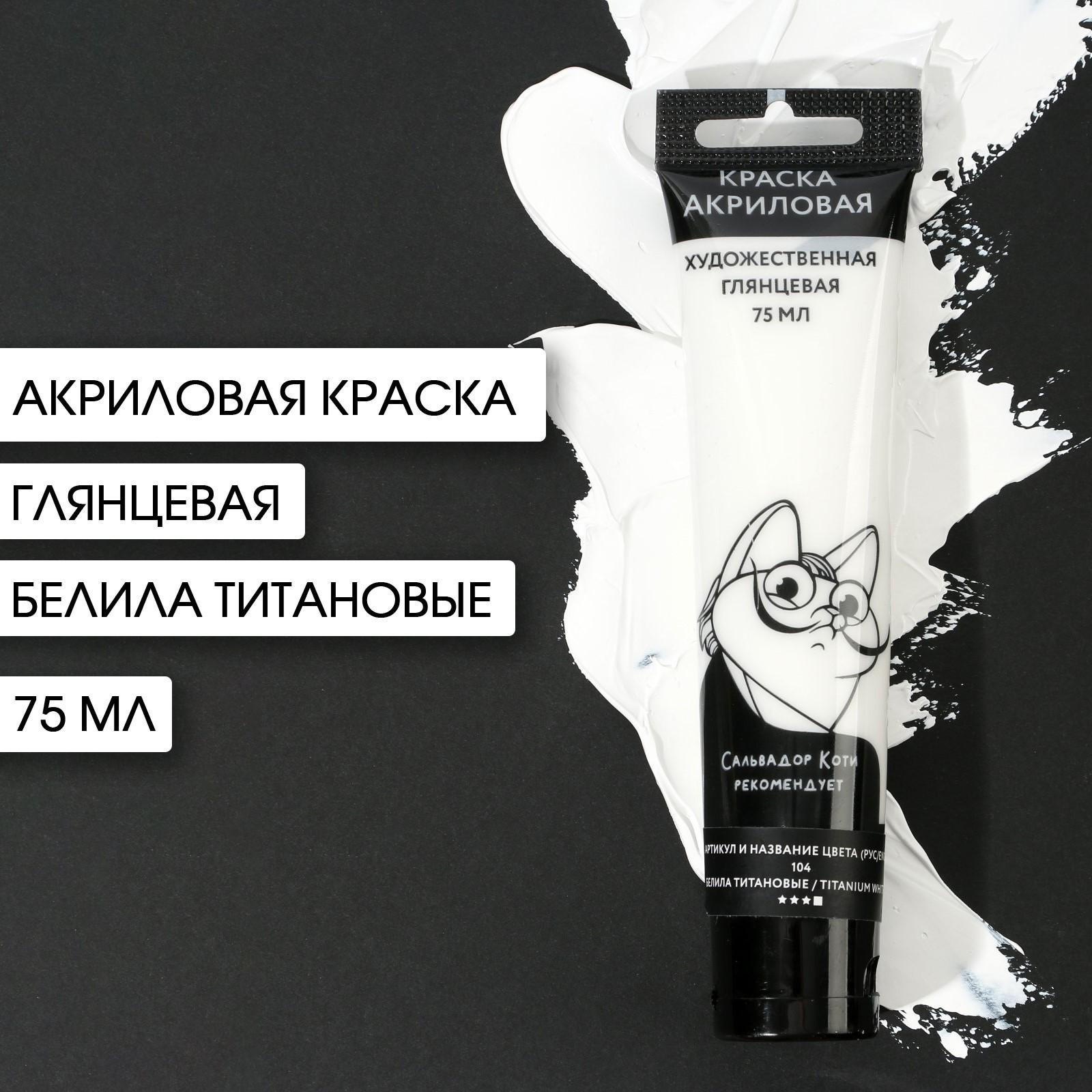 Акриловая краска, цвет белила титановые, №104, в тубе 75 мл, ARTLAVKA