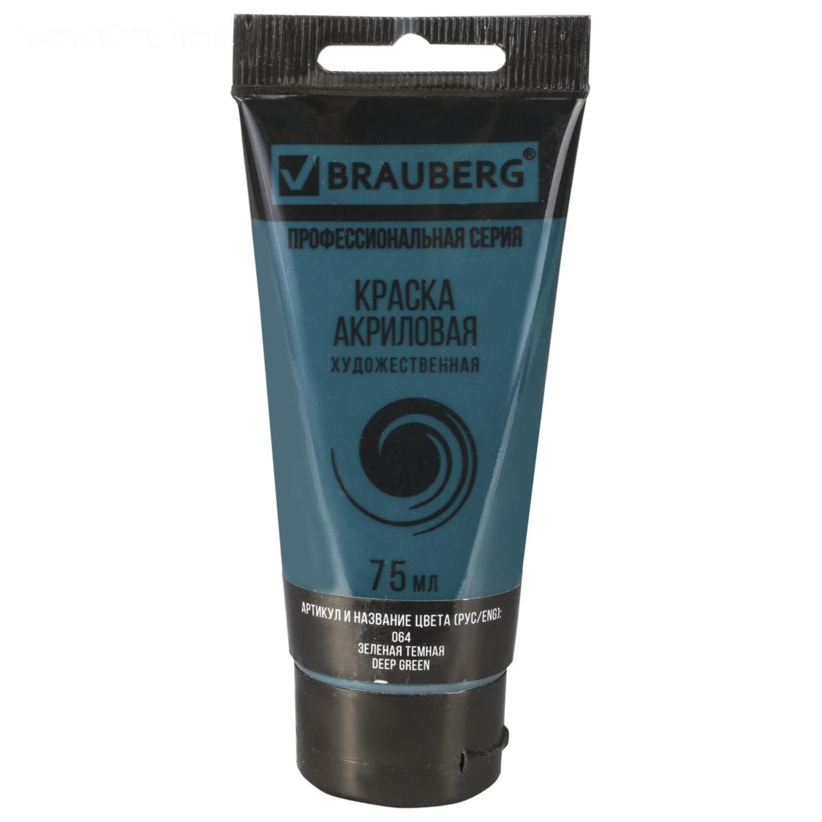 Краска акриловая художественная туба 75 мл BRAUBERG "Зелёная тёмная"