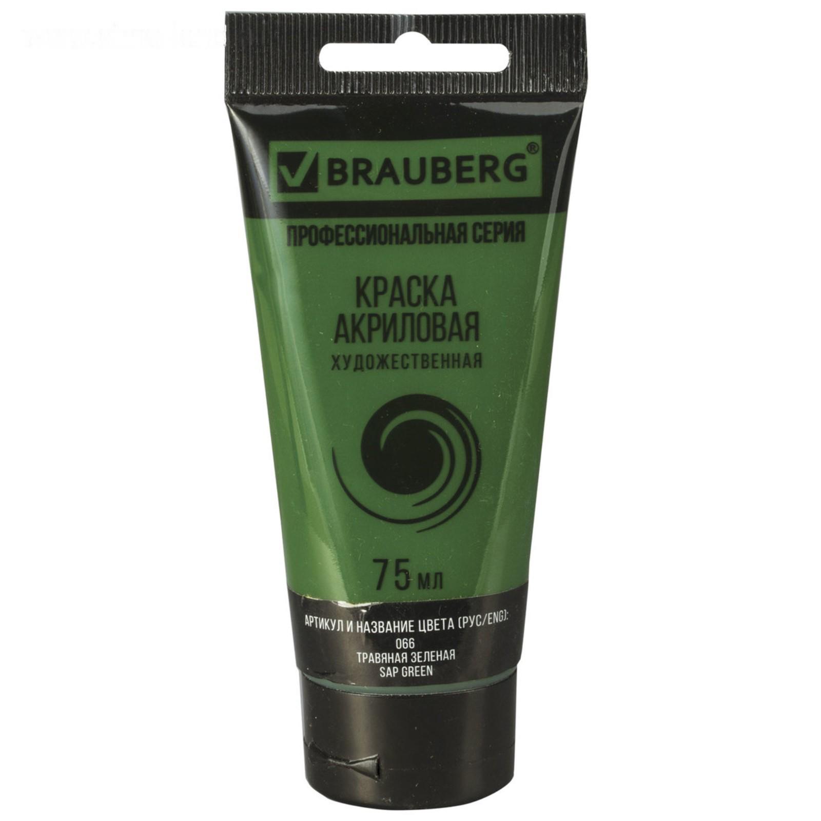 Краска акриловая художественная туба 75 мл BRAUBERG "Травяная зелёная"