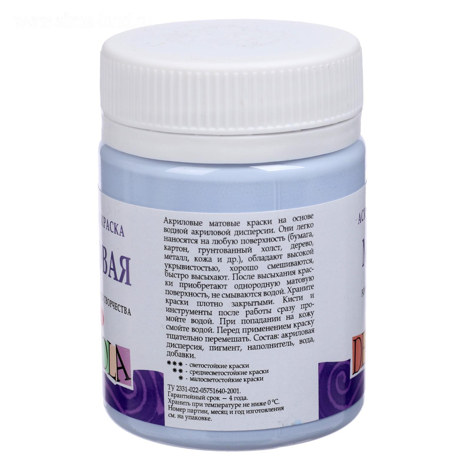 Краска акриловая матовая 50 мл, ЗХК Decola, Королевская голубая, 14328528